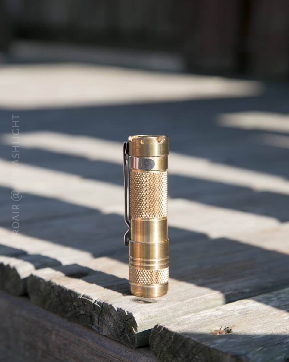 The build quality is so-so. There’s not one single thing I’d point to that needs improvement, but on the whole, the build quality isn’t on par with higher-end lights. That said, this isn’t a “higher-end” light – it’s a $30 brass AA light. The aluminum version is probably easier to compare – is the $20 version of this light on par with other $20 lights? Convoy S2+, for example, probably has overall better build quality.
