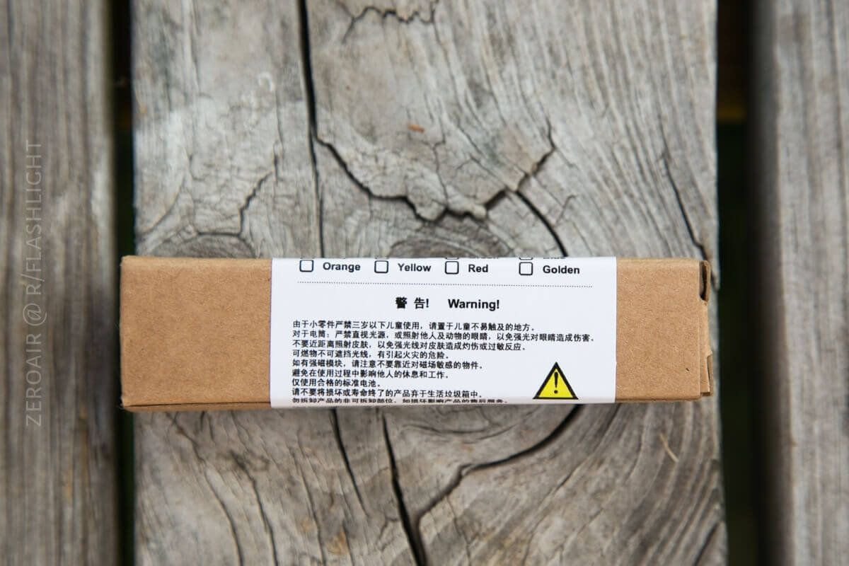 Just like all DQG lights, this one comes in a small cardboard box with little packaging and little branding. In fact, the label is just a sticker that’s used for all DQG lights – the same sticker. The light in the package will be check-marked. Very efficient.