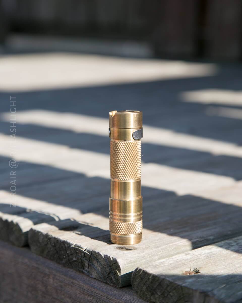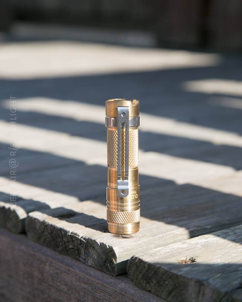 The build quality is so-so. There’s not one single thing I’d point to that needs improvement, but on the whole, the build quality isn’t on par with higher-end lights. That said, this isn’t a “higher-end” light – it’s a $30 brass AA light. The aluminum version is probably easier to compare – is the $20 version of this light on par with other $20 lights? Convoy S2+, for example, probably has overall better build quality.