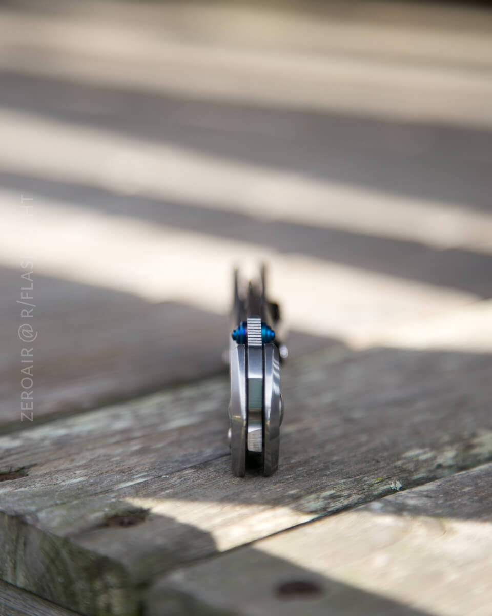 Note the blue thumbstud and the blue lanyard hole. There’s a thumbstud on both sides of the knife, making it more or less ambidextrous.