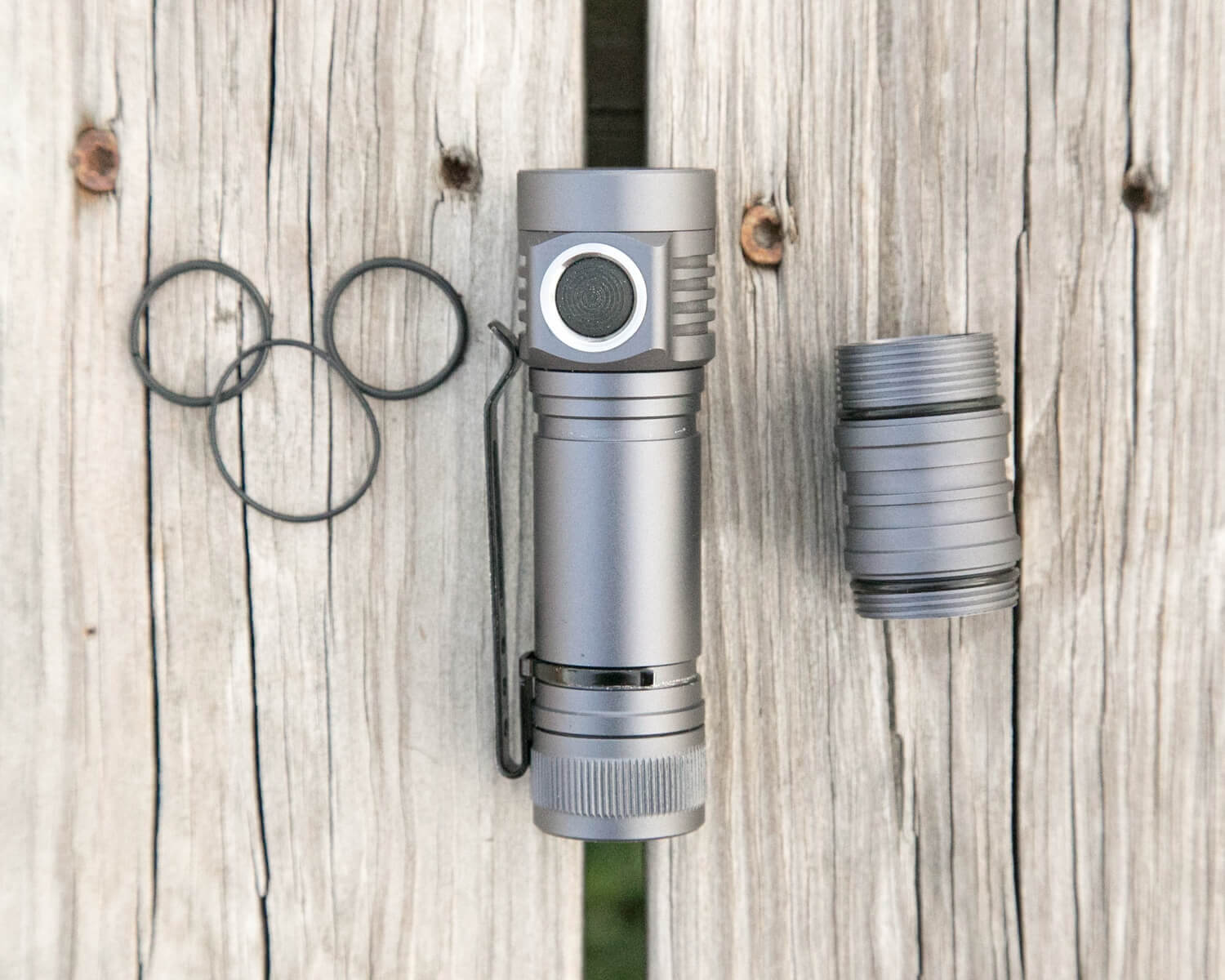 As provided, this is a pocket light. There’s no pouch, magnet, or clip. The body is ready for a clip – the 18650 has a slot on the head and tail for a friction clip. But one isn’t provided, linked, or mentioned. I found that a clip I have for the Convoy S2+ works respectably well, and that’s what I’ve been using. The light has come off that clip a couple of times, though.