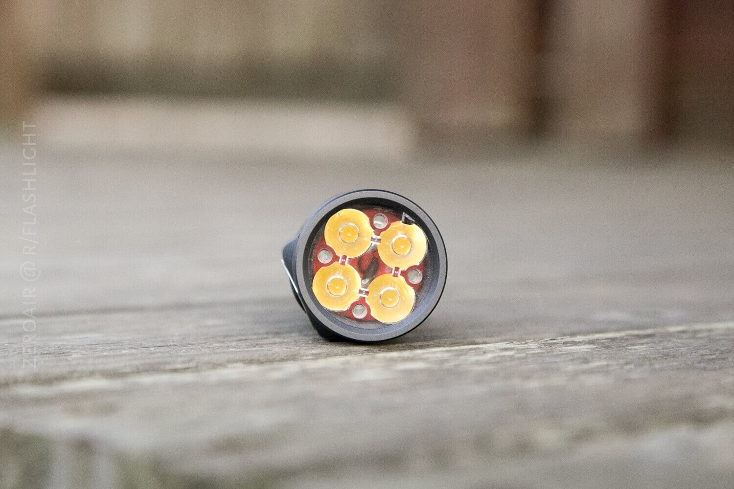 My version of the D4 has four Nichia 219CT 83CRI in 5000K. The beam is fairly rounded, but if you rotate the light, you can probably pick up a square-ish profile due to the quad putting the emitters in a square. The beam is fairly concentrated. Not throwy, but also not quite all flood as one might expect with this quad.