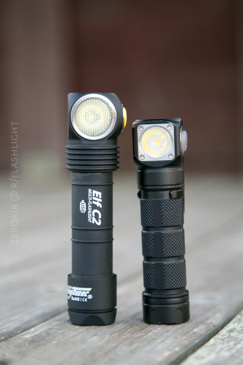 The Elf C2 is a good bit longer than the Skilhunt H03, but of course, adds onboard charging.
