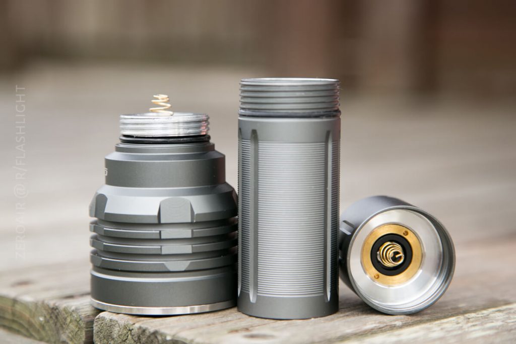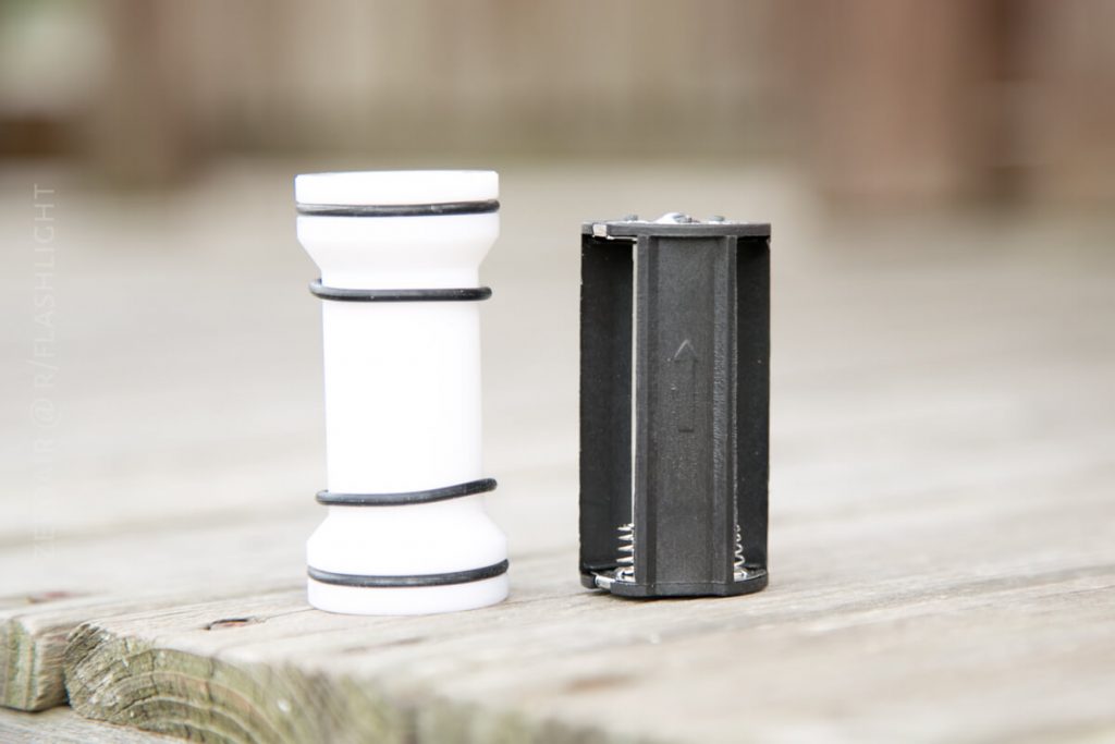 There are two loose o-rings included, and they must be used as follows: With the AAx3 option, the o-rings rest on (not around) the top and bottom of the adapter. With the 26650 option, the o-rings go around the body of the cell to prevent rattle. The o-rings aren’t used with the 18650 adapter (but that’s where I store them since that’s the setup I use most often).