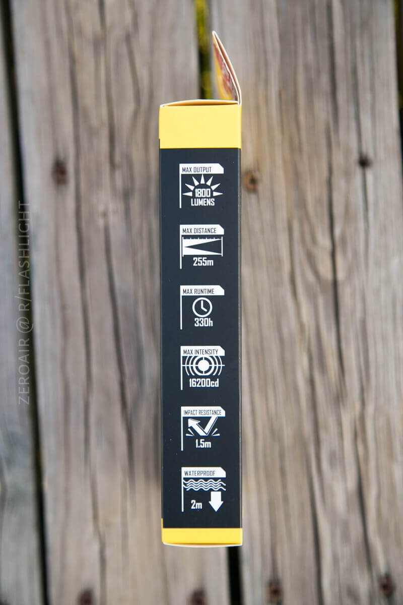 The EC23 comes in a display-ready, non-windowed black and yellow cardboard box. The light and goods are in a plastic tray. Just like all current Nitecore EDC-sized lights.