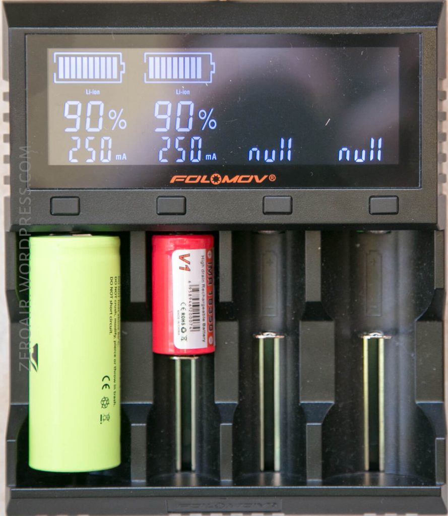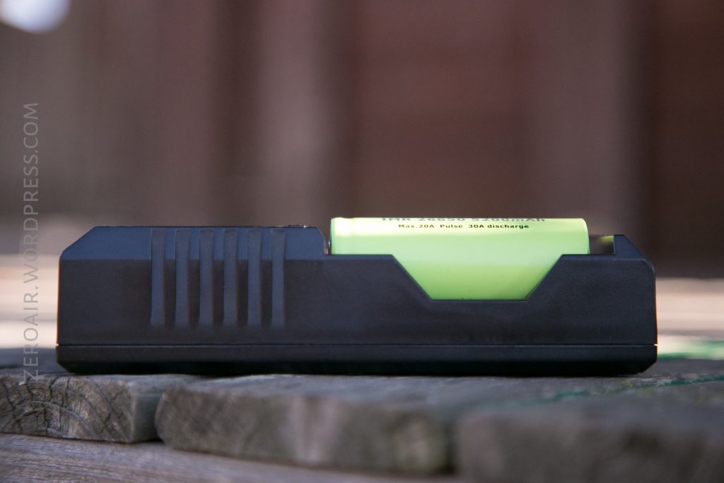 This is a fairly simple charger, but it does charge quite fast with the 3A setting. I like that. I also like the properly sized 26650 bays (2).