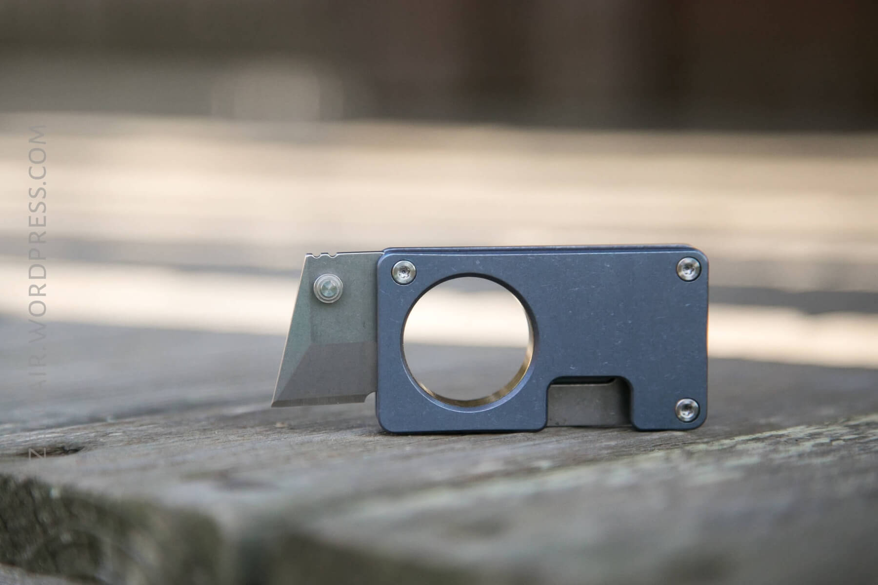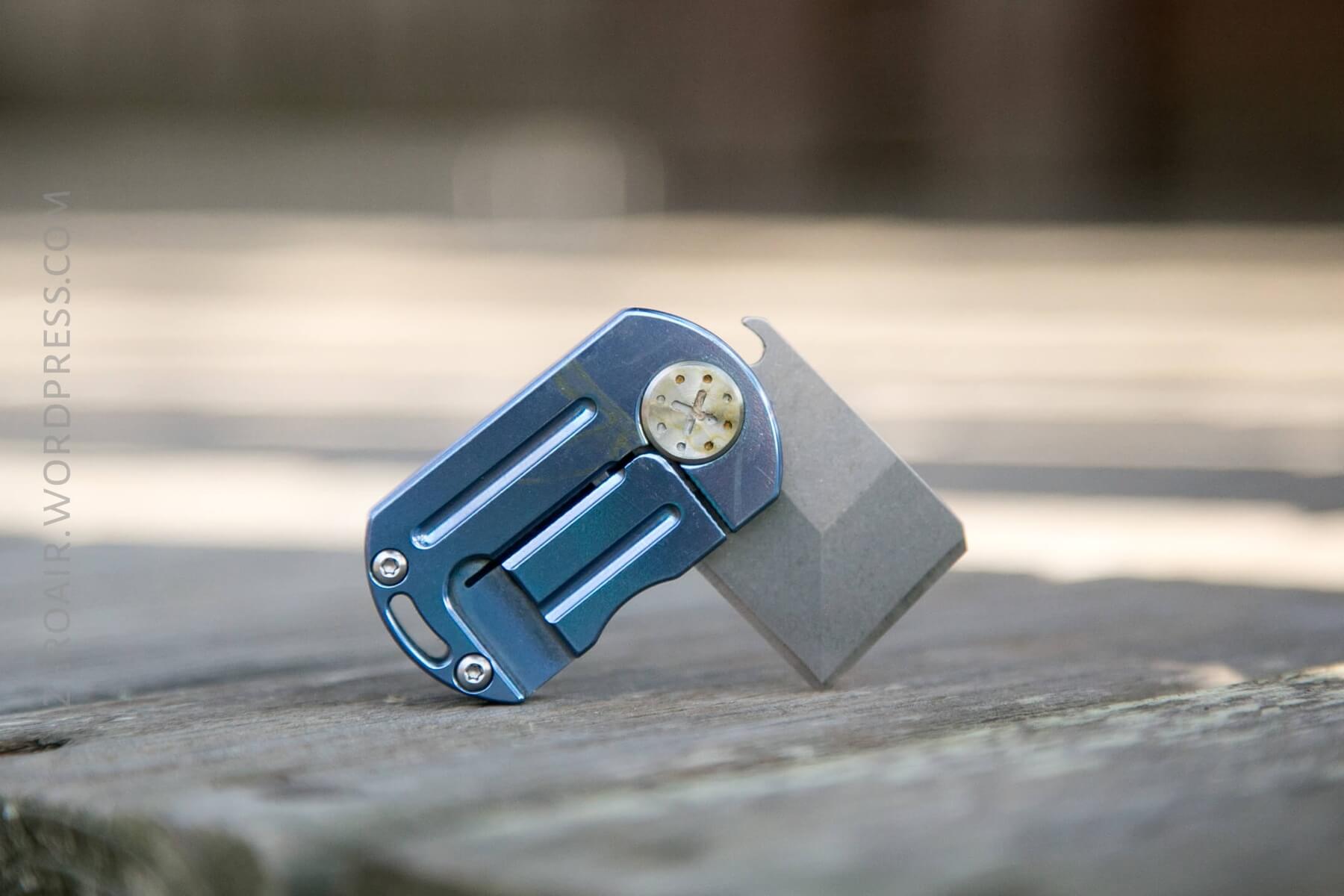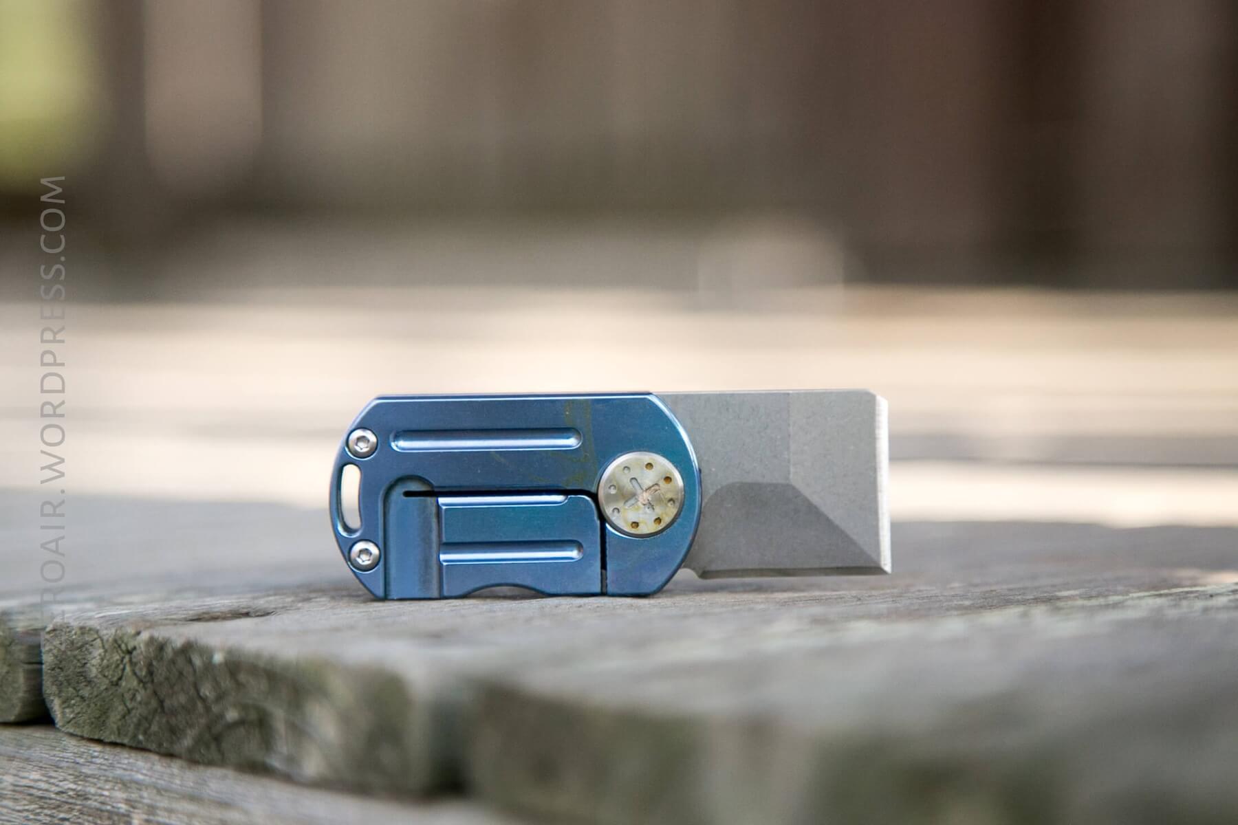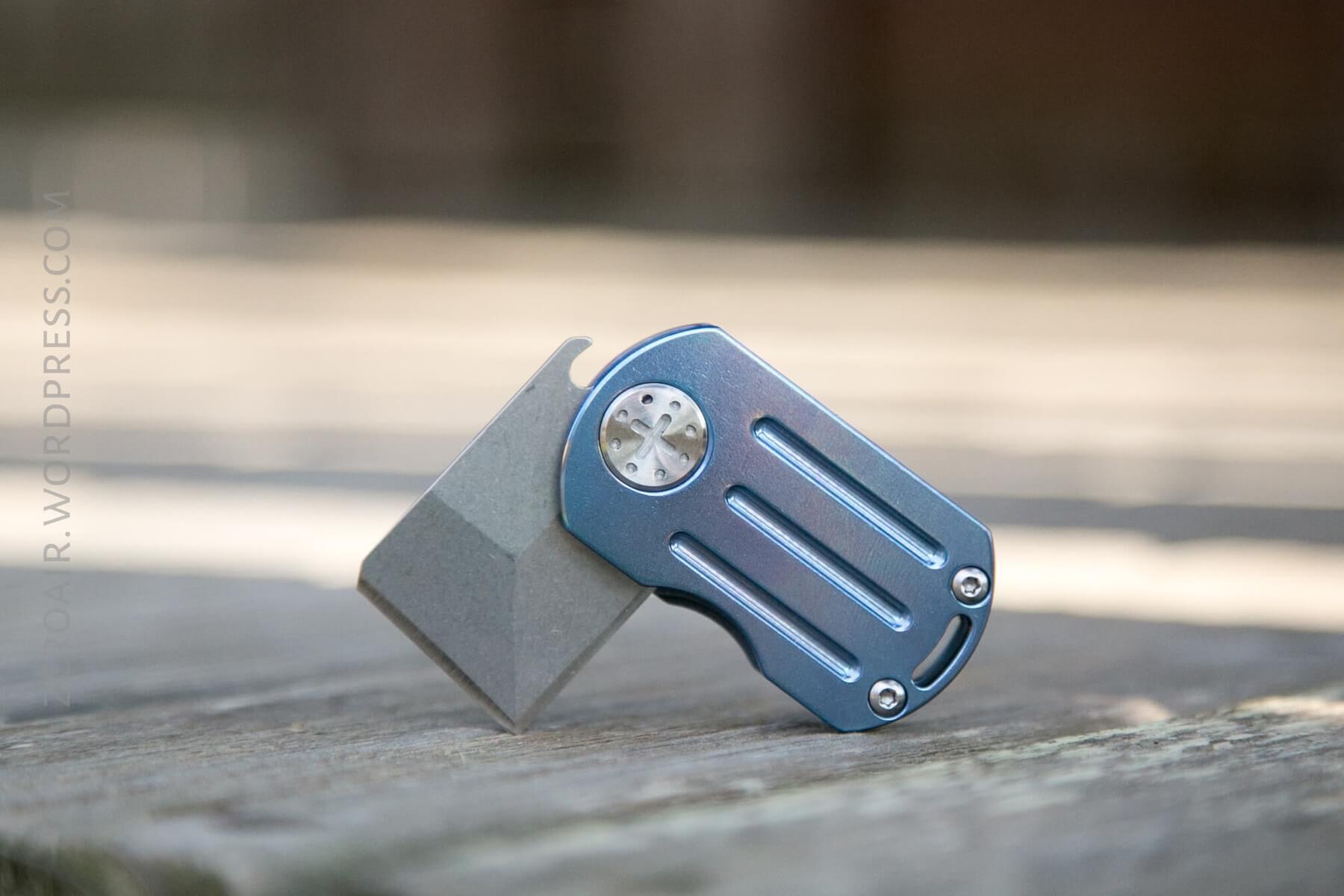 This is an interesting little design. You’ll notice that when closed, there’s really nowhere to access the blade with one’s fingers. I found that the little hook, which is at the top/back of the blade, had to be dragged across a surface in order to get the blade to come out. Not useful in my opinion.
