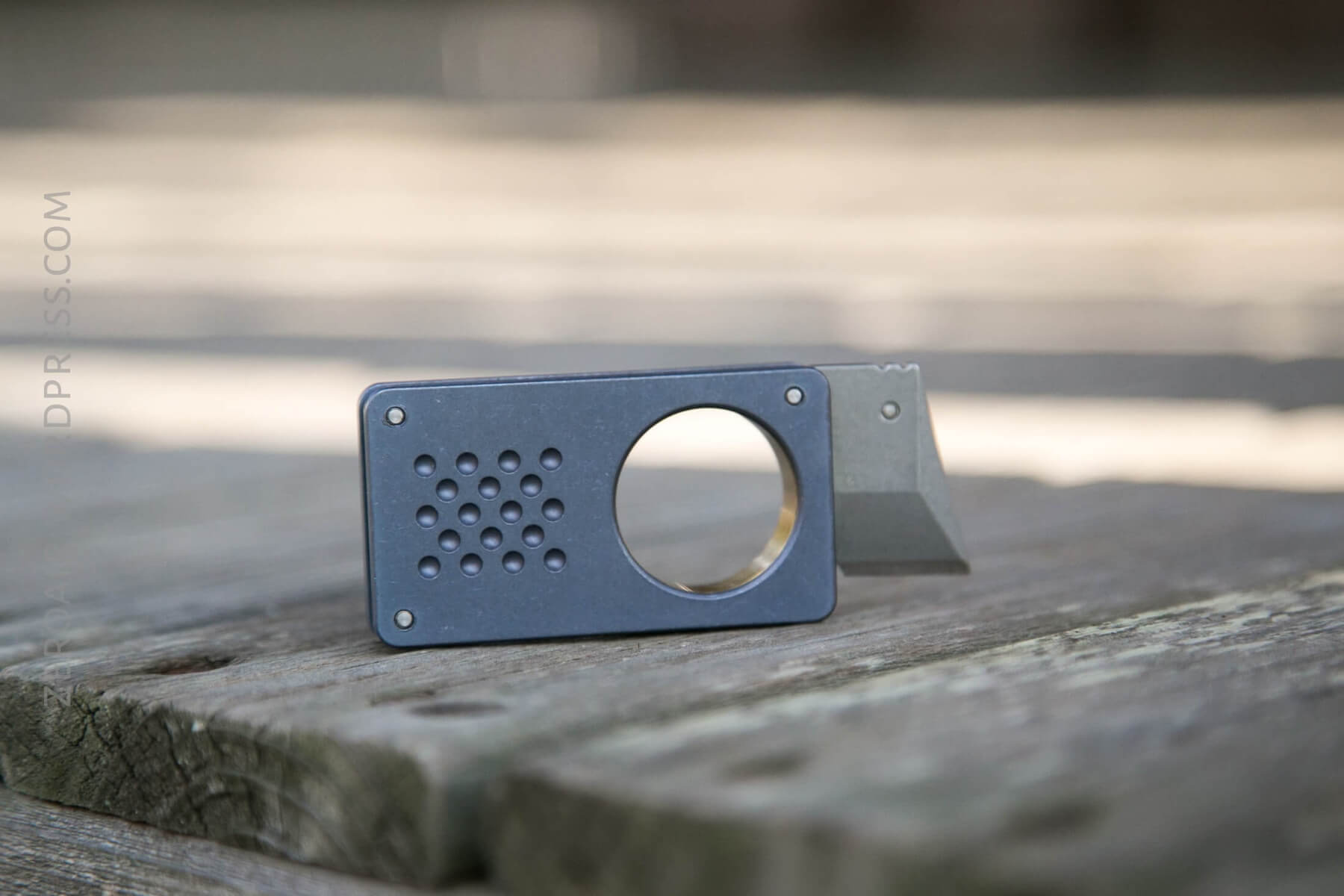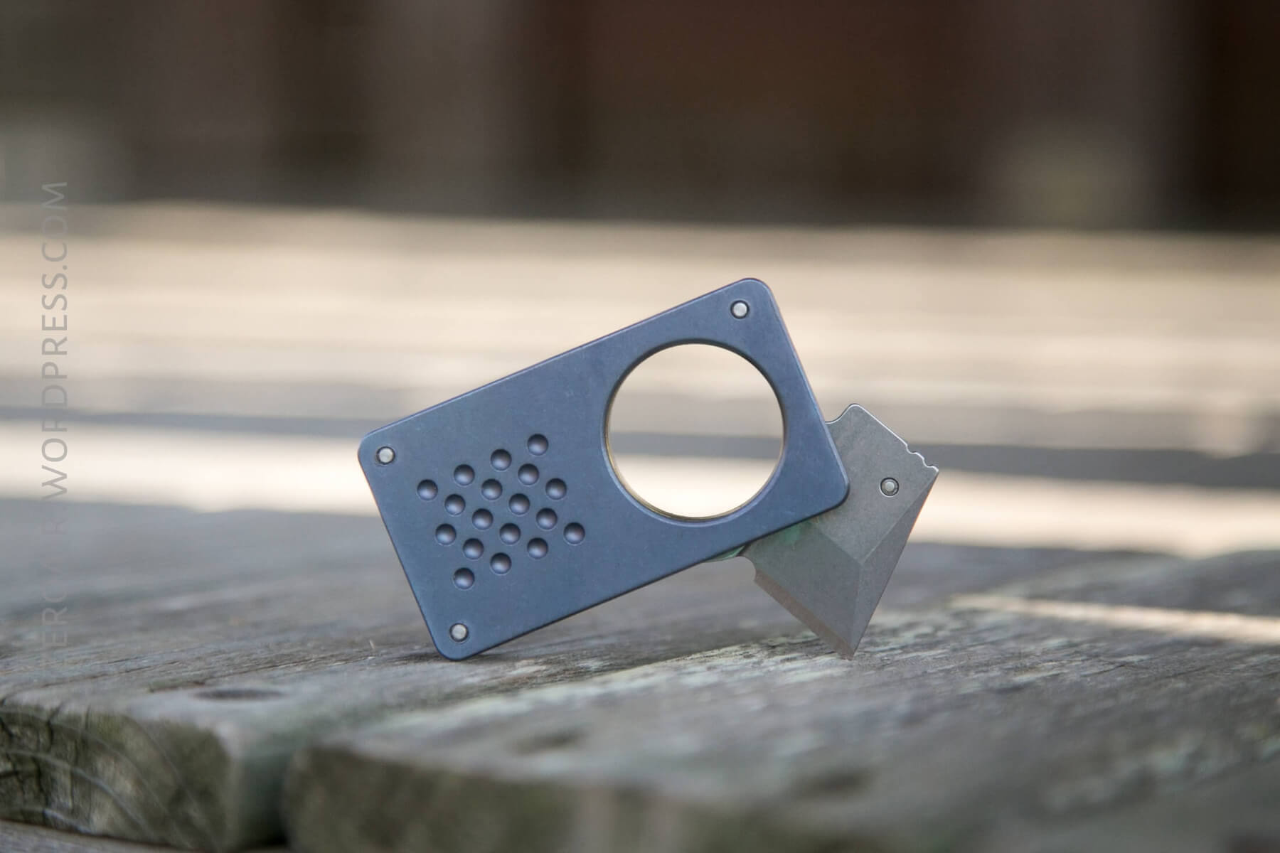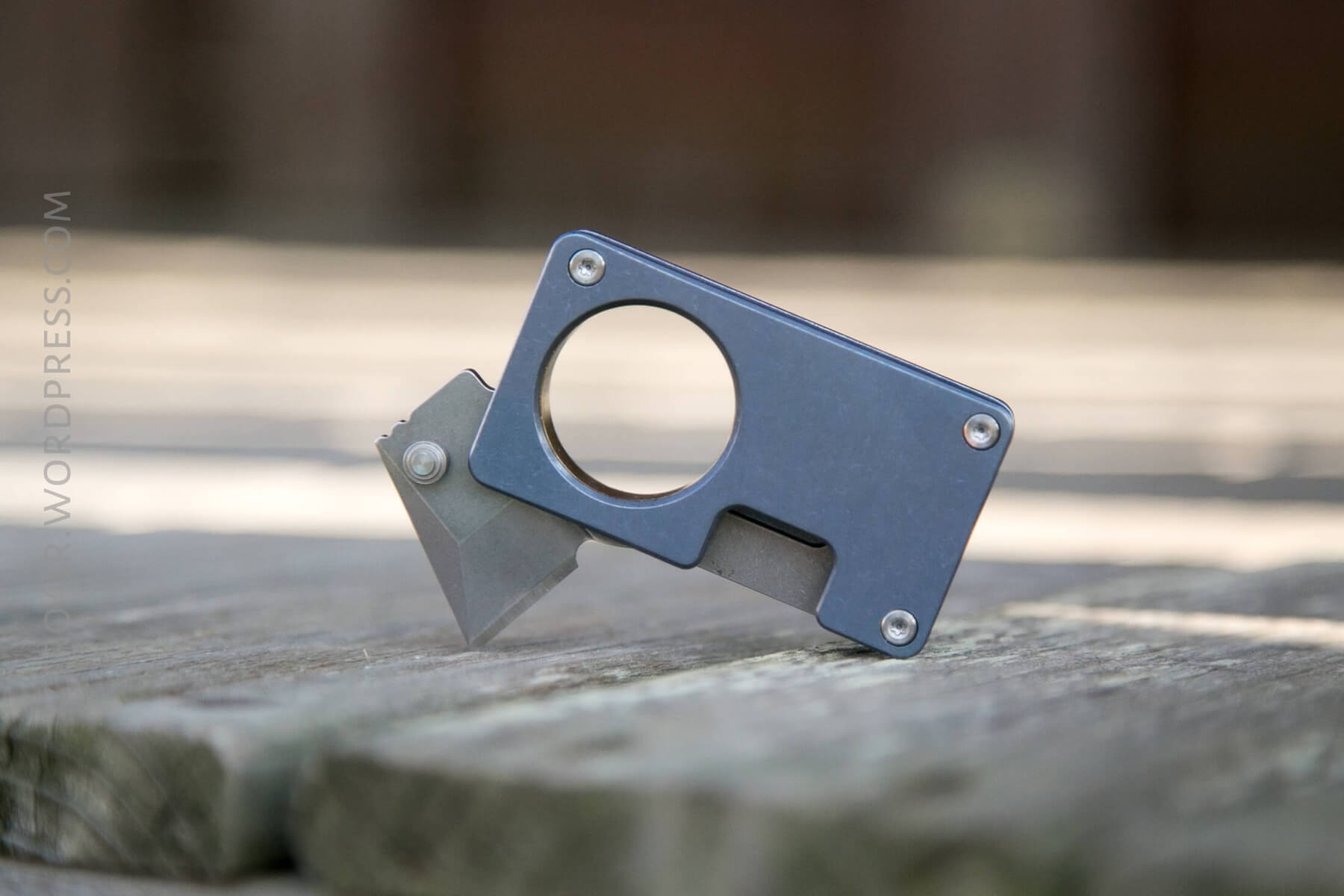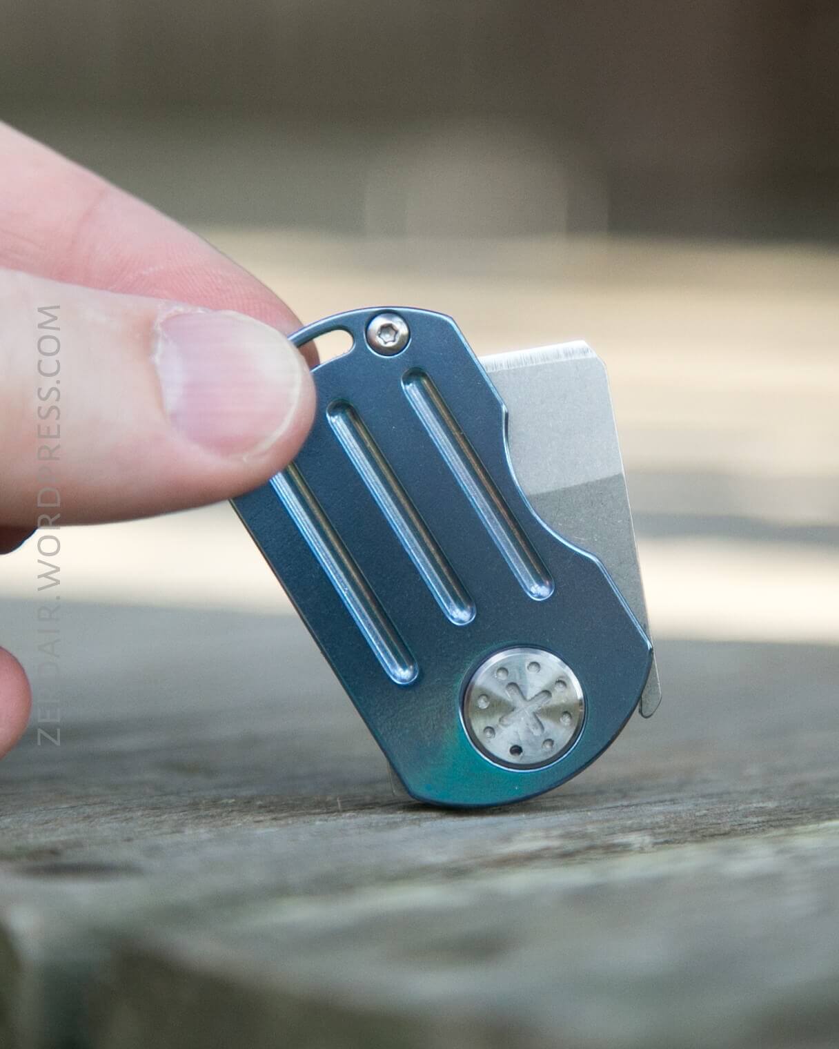 This is an interesting little design. You’ll notice that when closed, there’s really nowhere to access the blade with one’s fingers. I found that the little hook, which is at the top/back of the blade, had to be dragged across a surface in order to get the blade to come out. Not useful in my opinion.