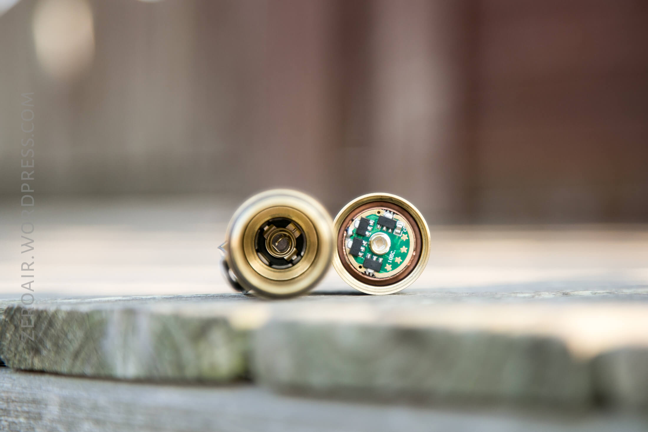 The Okluma DC1 is powered by a single 18350 cell. Okluma provides an AW 18350 – one of the highest (if not THE highest) quality 18350 cells on the market. It’s a high drain (15C) 800mAh unprotected button top cell.