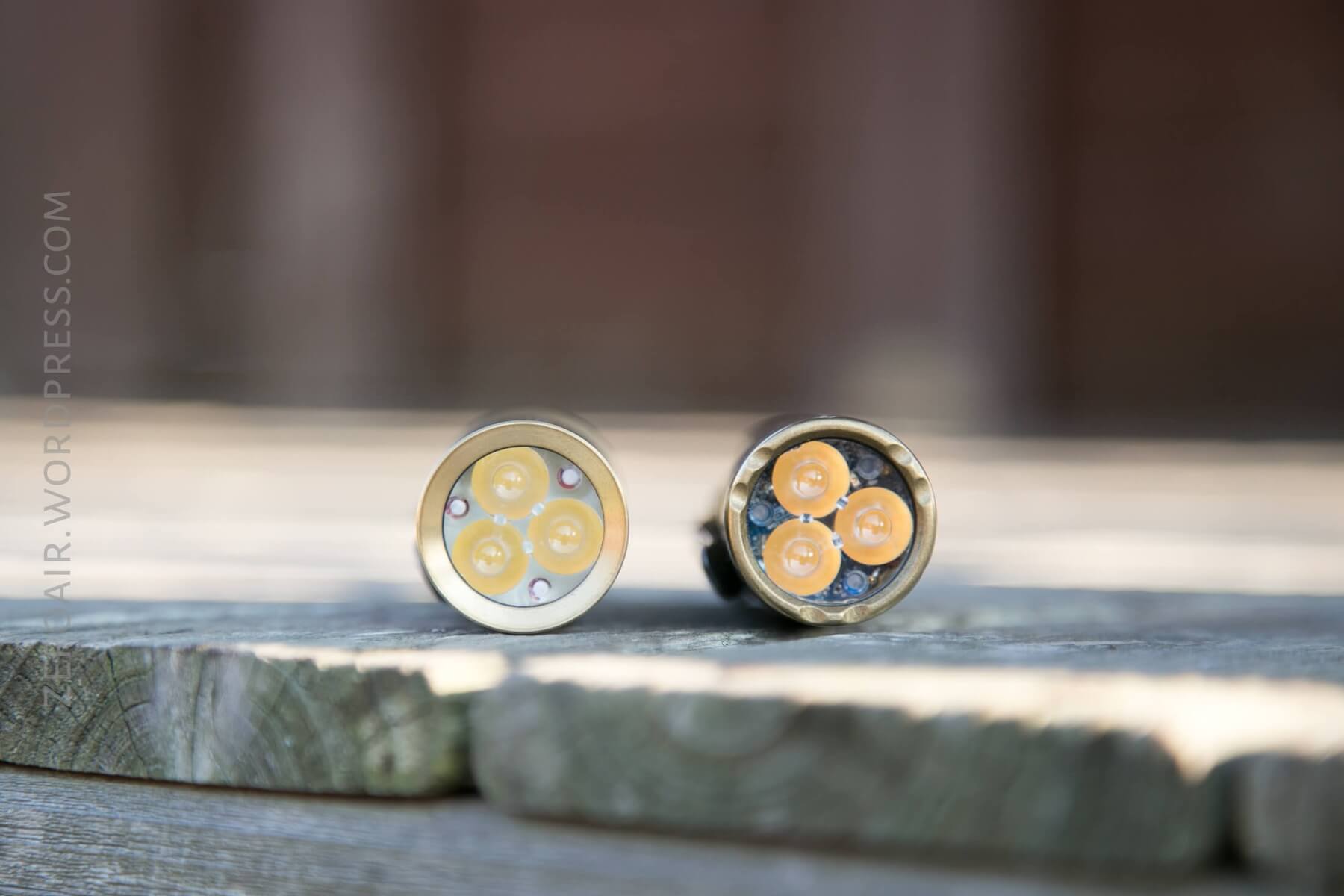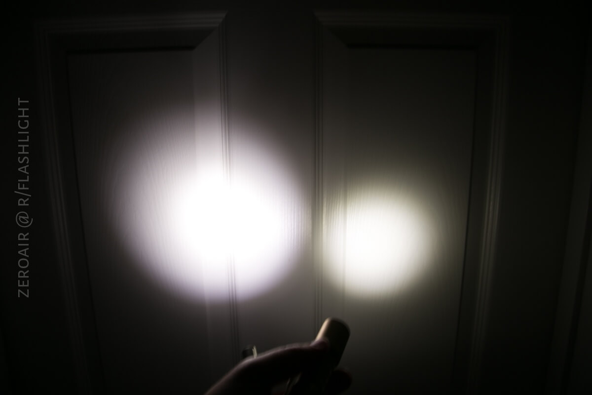 My sample has Nichia 219c emitters, and I love them. I have a few other lights with this emitter, and while I probably prefer 219b for their rosy tint, the 219c emitters have an absolutely white light, and that’s probably actually better.