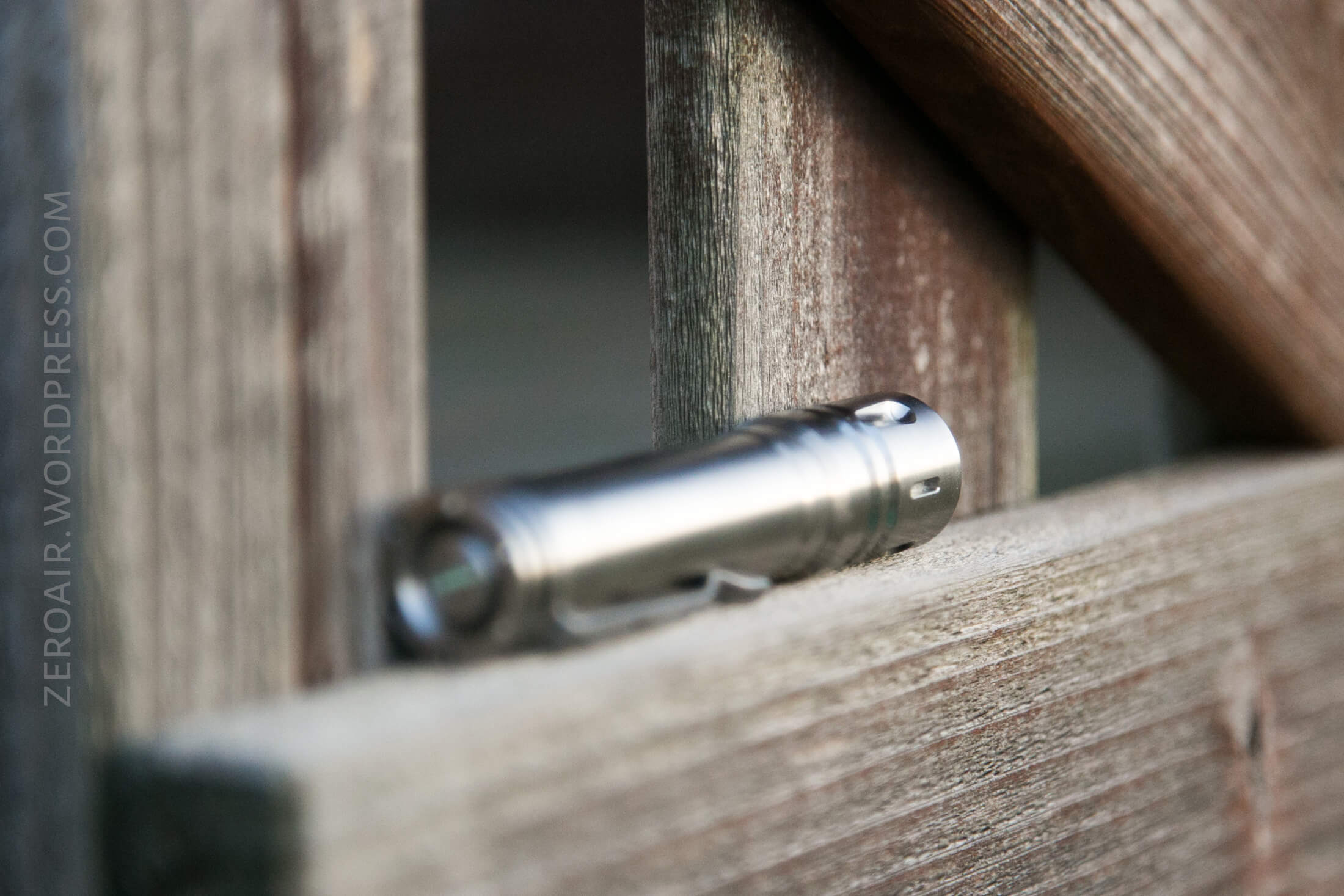 It’s both possible and fairly simple to disassemble the light. The tail parts simply unscrew. There’s an internal screwed-down bit too, but that’s easy to remove with some tweezers. Thus, switch maintenance is a breeze. If you do unscrew this, be sure to put the pocket clip back on… it’s possible to screw the decorative cover on the tail cap tightly enough that the parts are then hard to get apart. Or so a friend tells me, anyway.