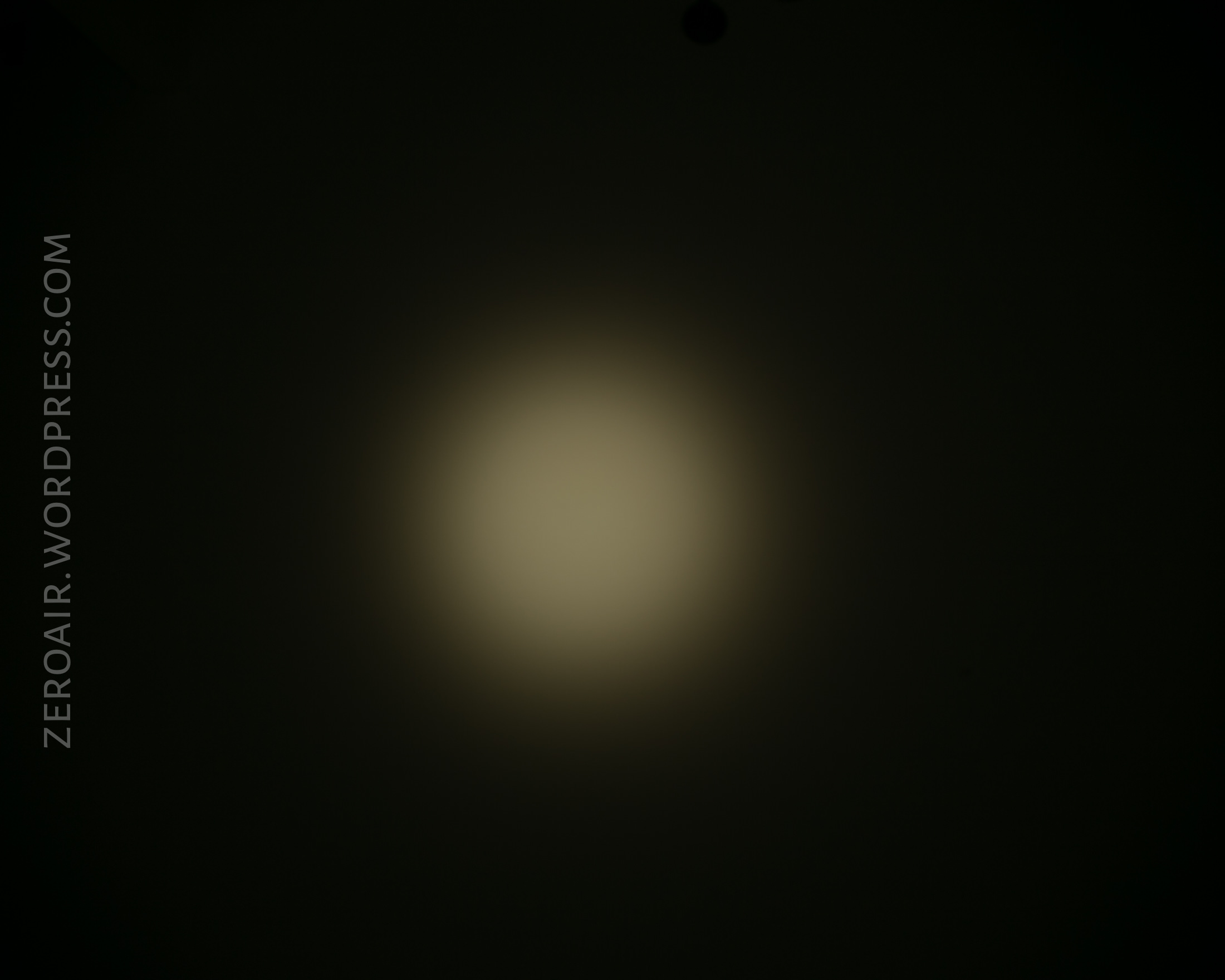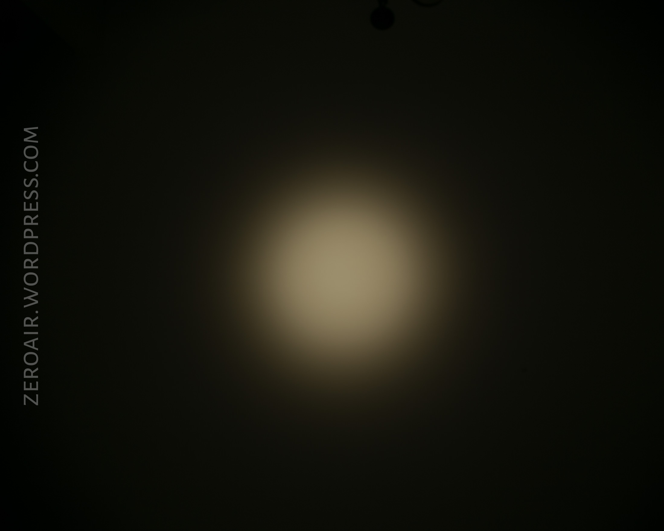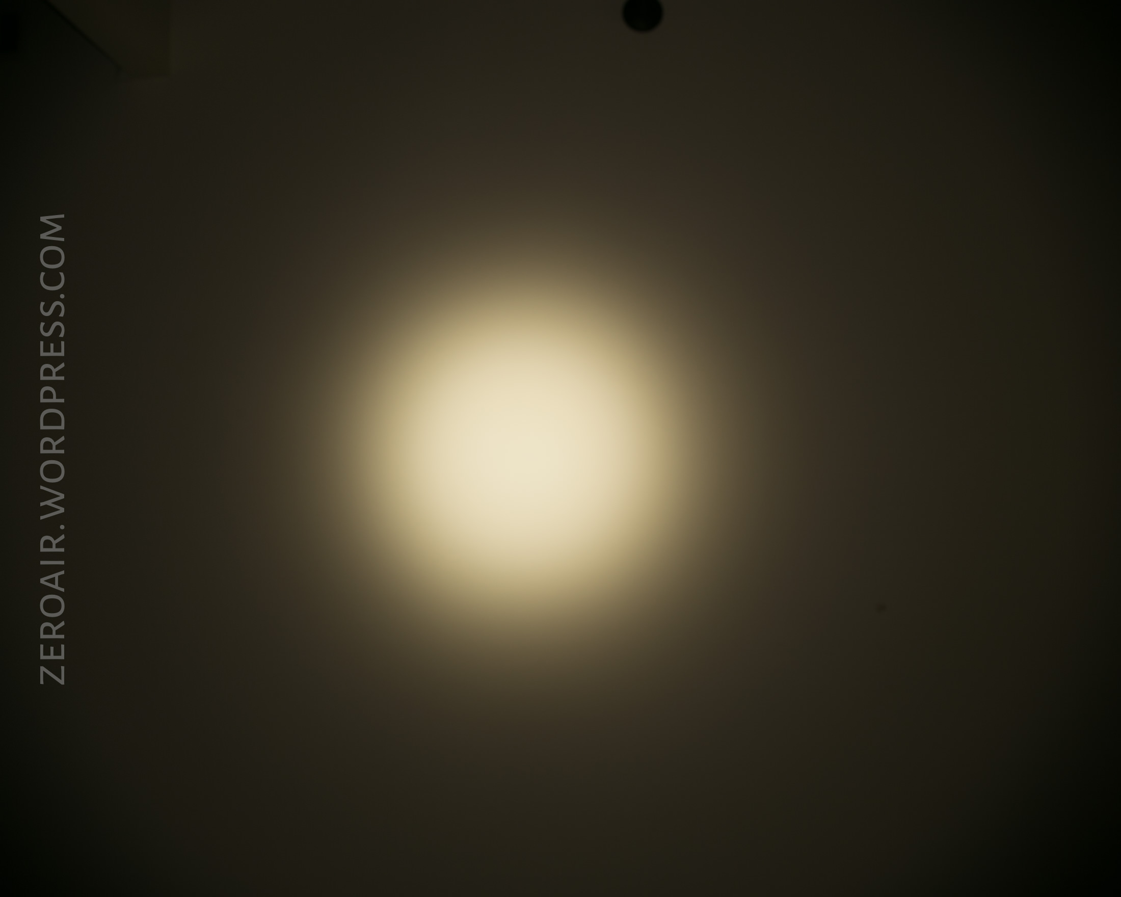 The emitter of choice in this ReyLight Lan Ti is a Nichia 219C 4000K high CRI. 4000K is quite a bit warmer than I was expecting, but it’s a very pleasant tint, and of course, the color rendition is great. The reflector is lightly orange peeled, and very shiny (that is, reflective). There’s a hotspot, but a fair amount of spill, too.