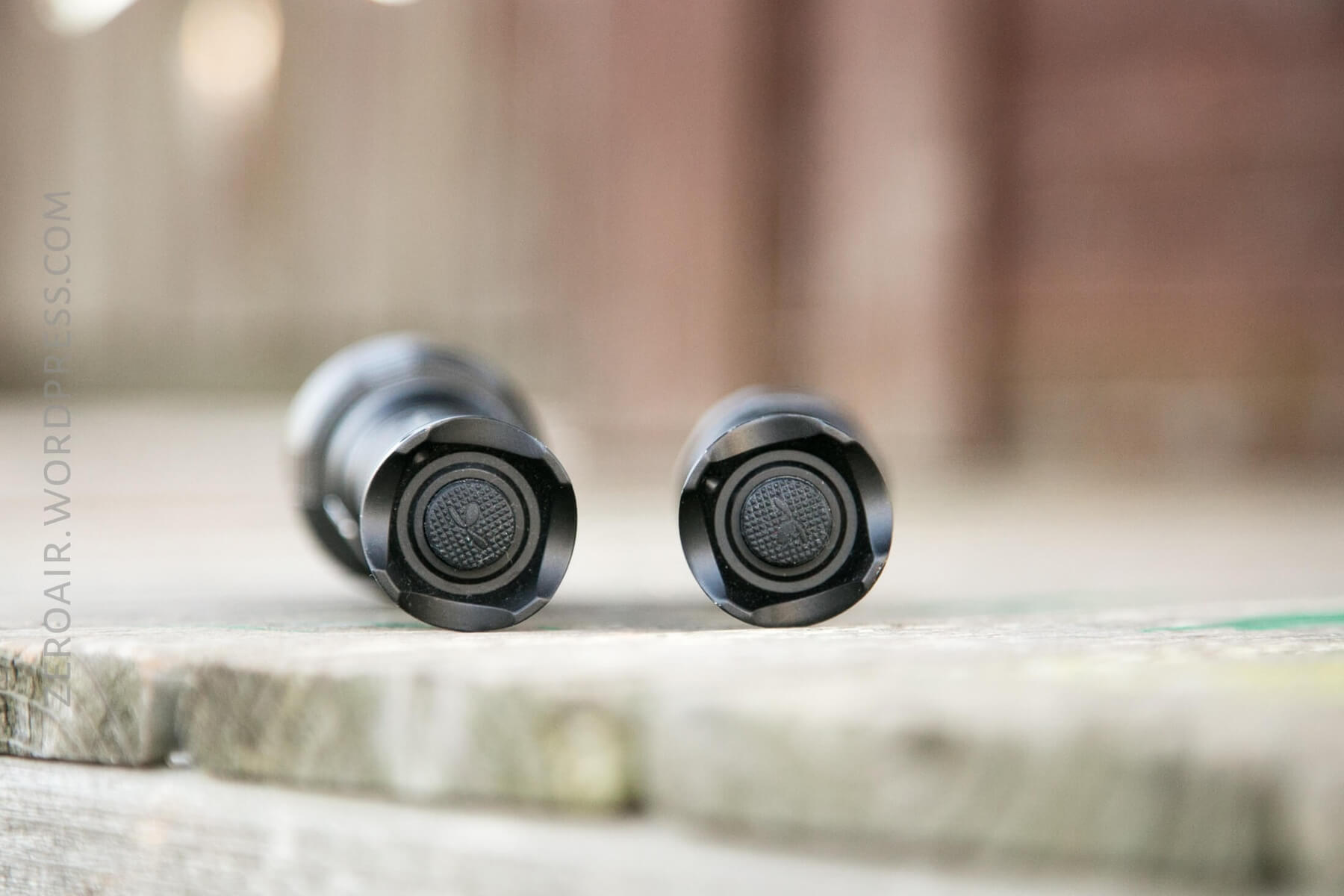 There’s just nothing negative to say about the build quality of these two lights. The knurling is good, the cooling fins are good, the threads are unanodized (head) and anodized (tail), and square-cut on both. There are springs on both ends of both lights, and they’re double springs, too. The reflectors are flawless, the buttons are responsive and accurate…. The build is just great on these lights!