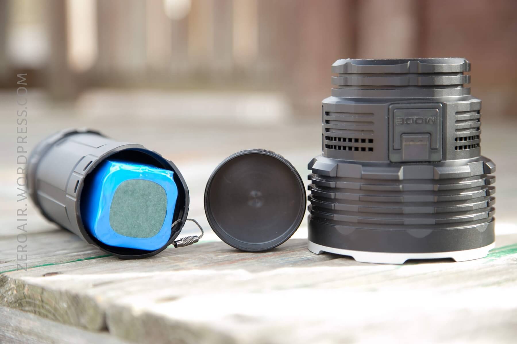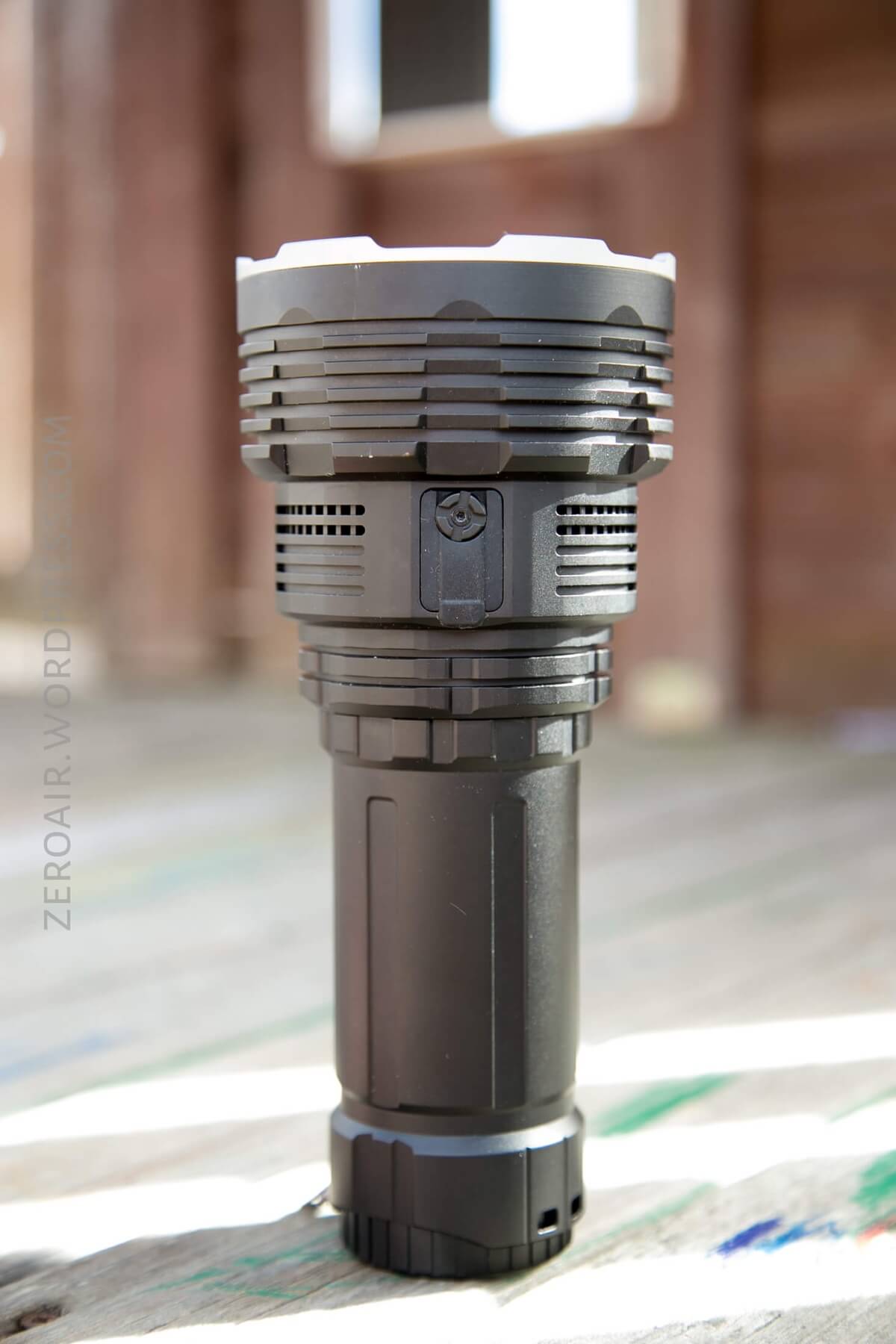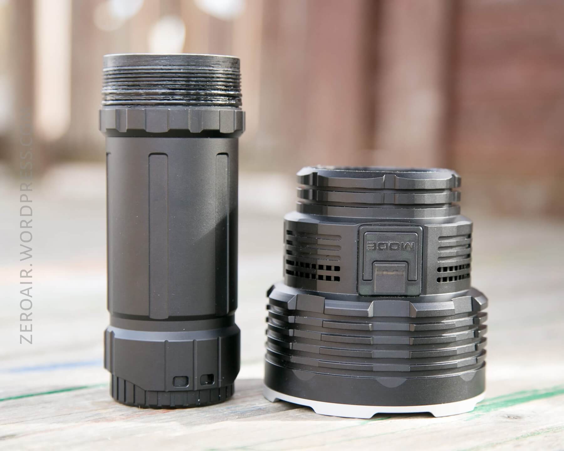 Make no mistake, this is a large light! Large and hefty. It’s 8×18650 worth of mass in the battery alone.