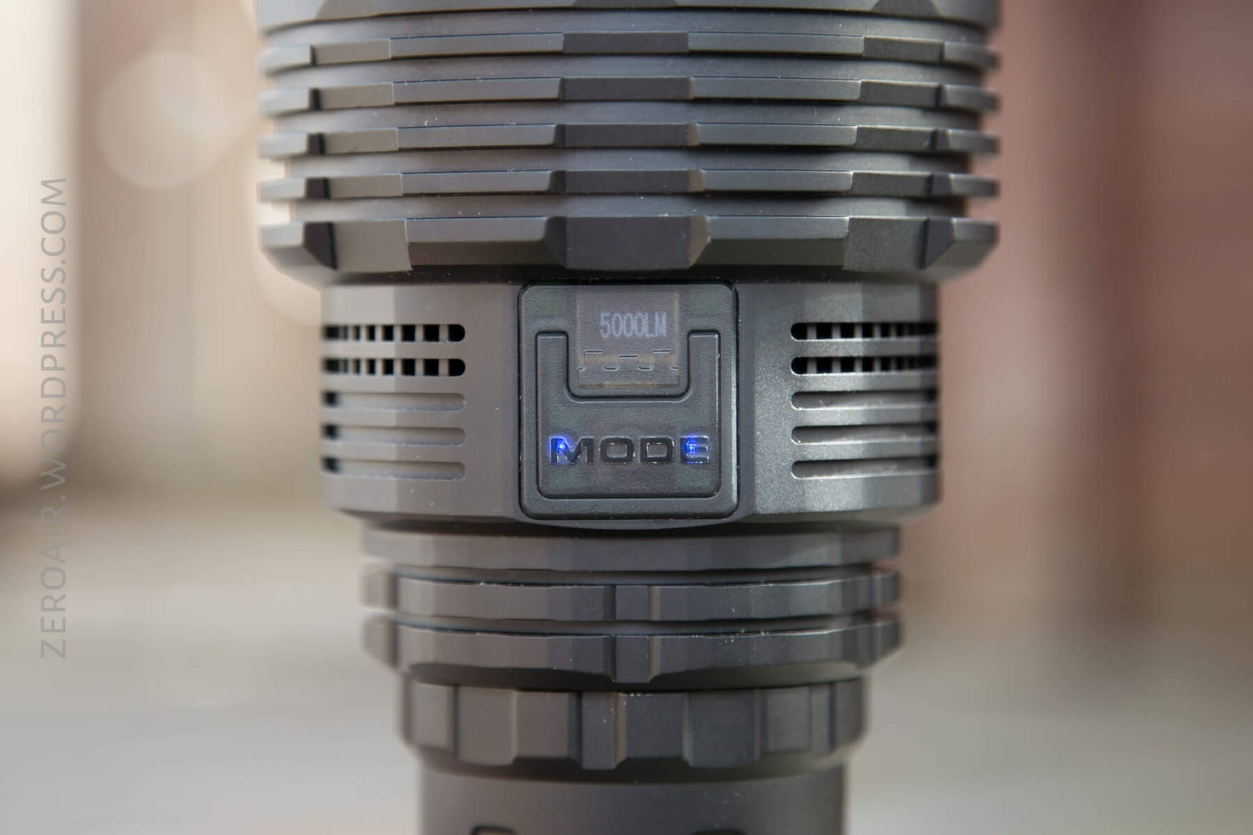 One of the things the OLED can display is the claimed output for any mode the user has selected. Here, the 5000LM mode. The OLED has a slow refresh rate, so if you’re sensitive to PWM, then you’ll notice it.