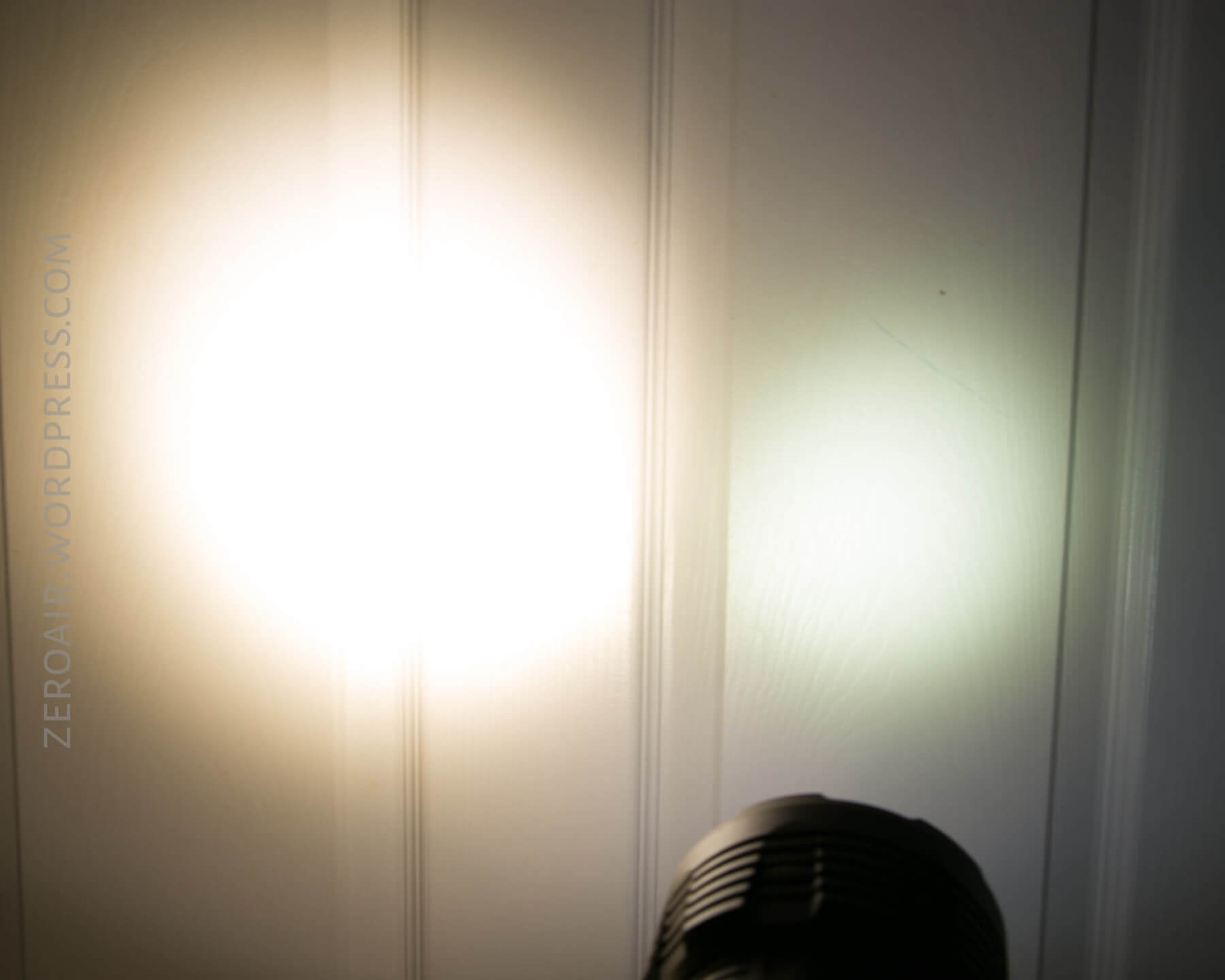 The beam is as you’d expect. A lot of flood, but with such a volume of light that there’s also a lot of throw as well. (I measured over 700m.) This is like the Convoy L6 taken to the next level; a wall of light, but with throw.