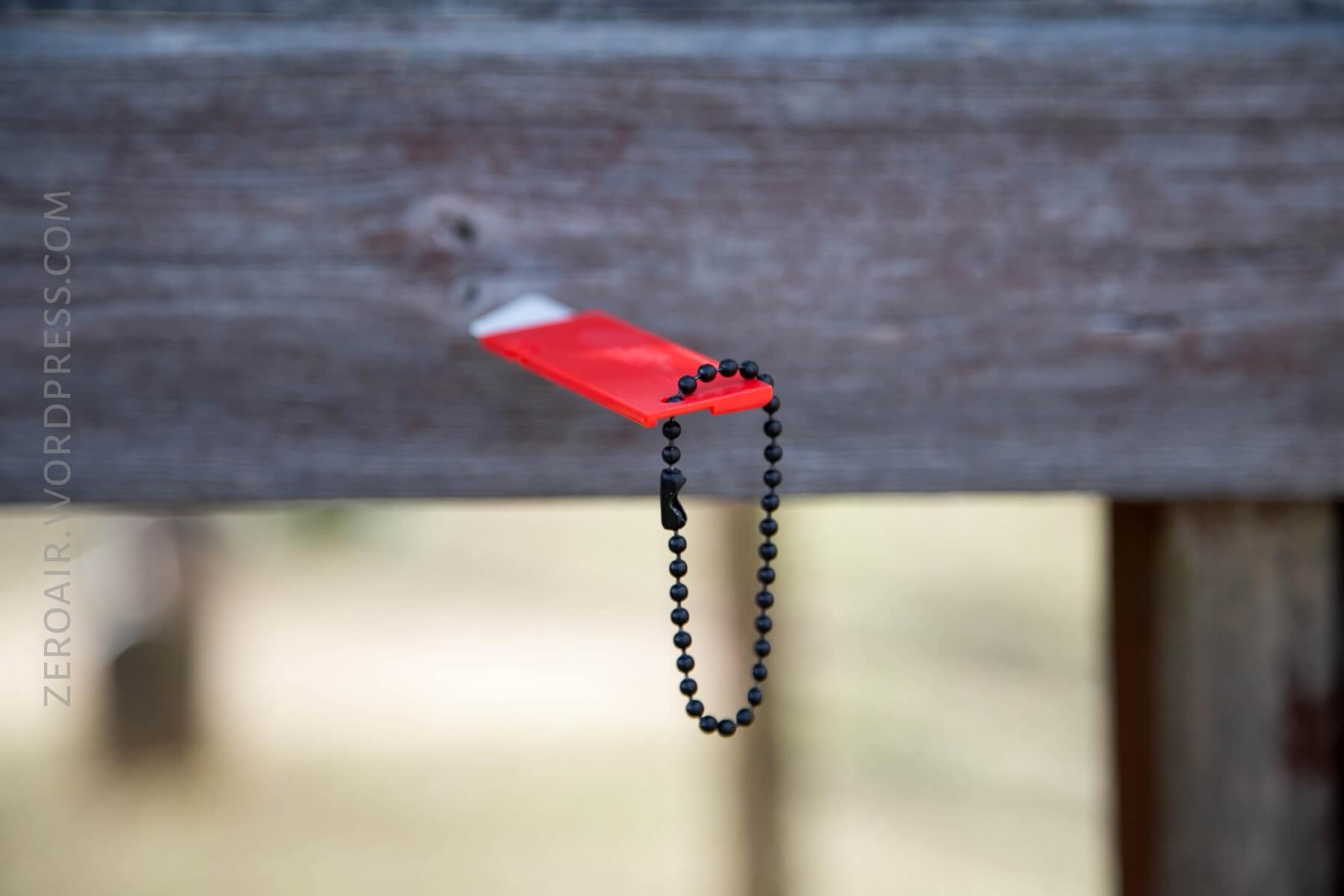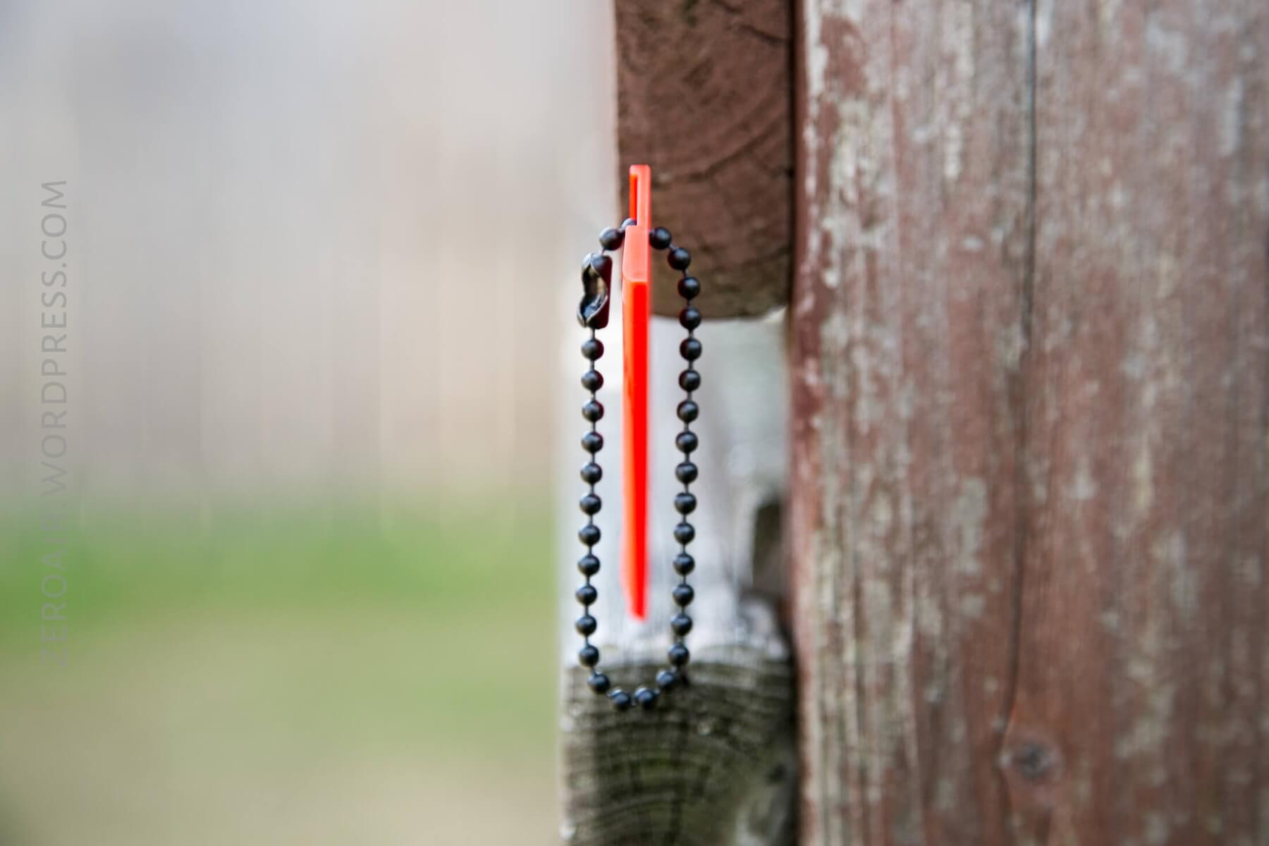 There is a chain – in fact, this is the only metal on the knife. This is one of those little knob chains, which disconnects from itself and reattaches to itself easily.