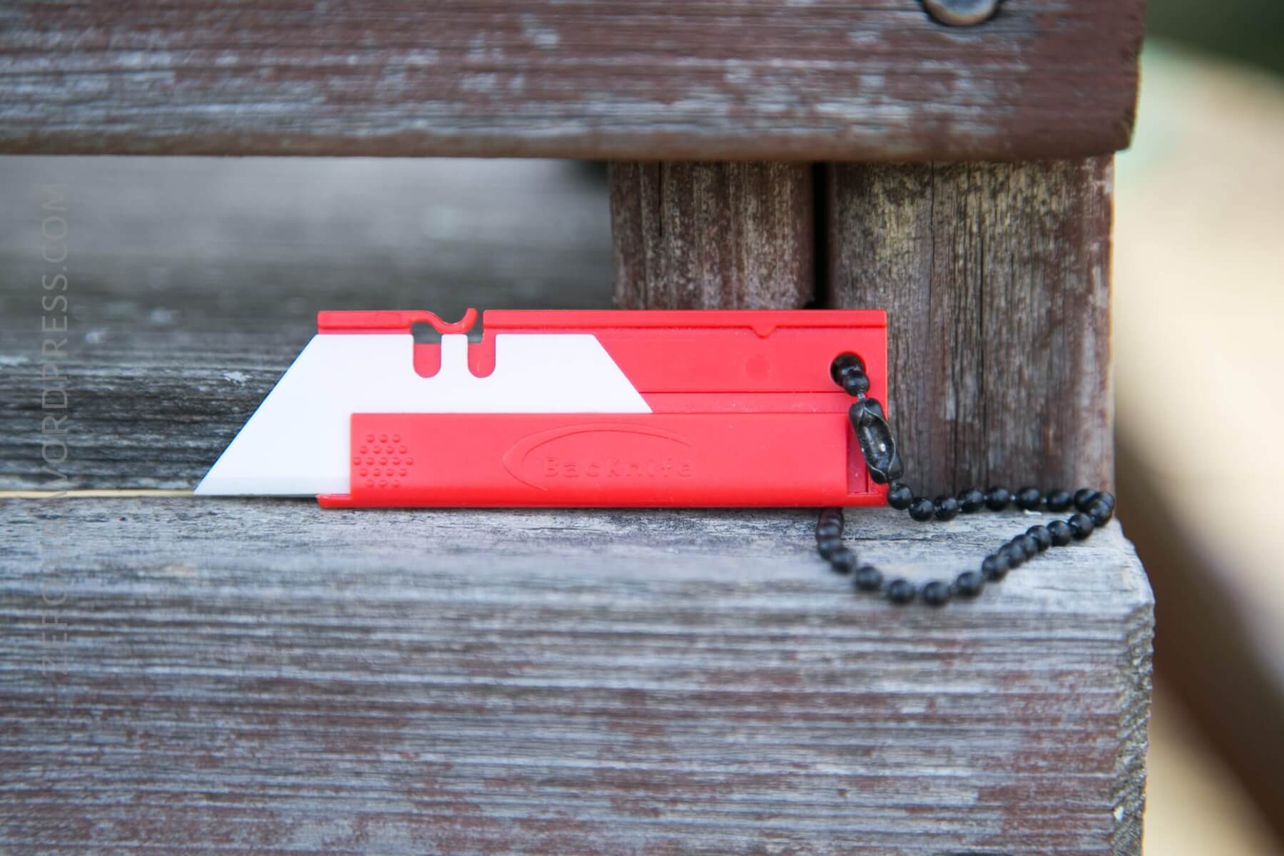 The Backnife has a nice look – white (or “ivory”) blade in a red housing. It’s bright and easy to spot. Orange would clearly have been a vastly superior choice.