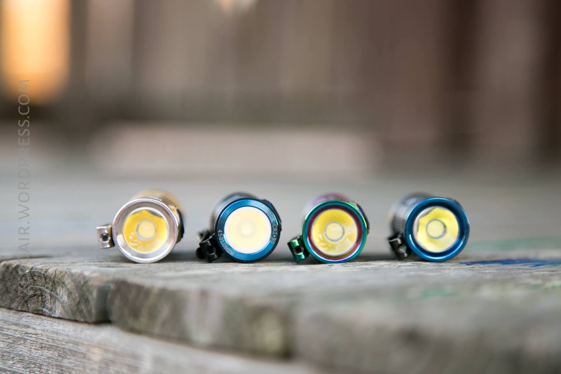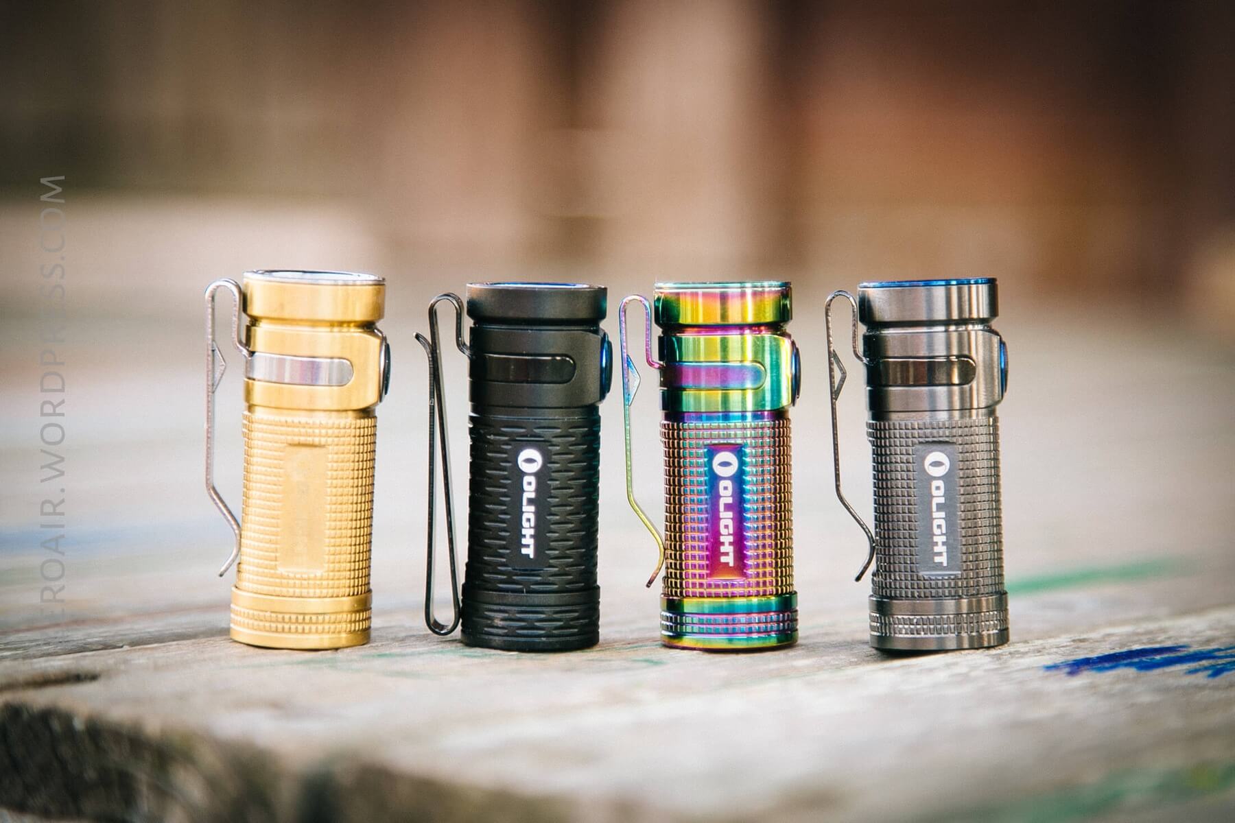 Seen below with the S Mini’s I have (raw brass, S1 Mini, PVD Titanium, Stainless). It’s smaller than these lights. But the only difference is the bezel. On the S Mini, the bezel is press-fit onto the head. On the S1 Mini, the bezel is press-fit into the head. It’s a difference of around 1mm in length.