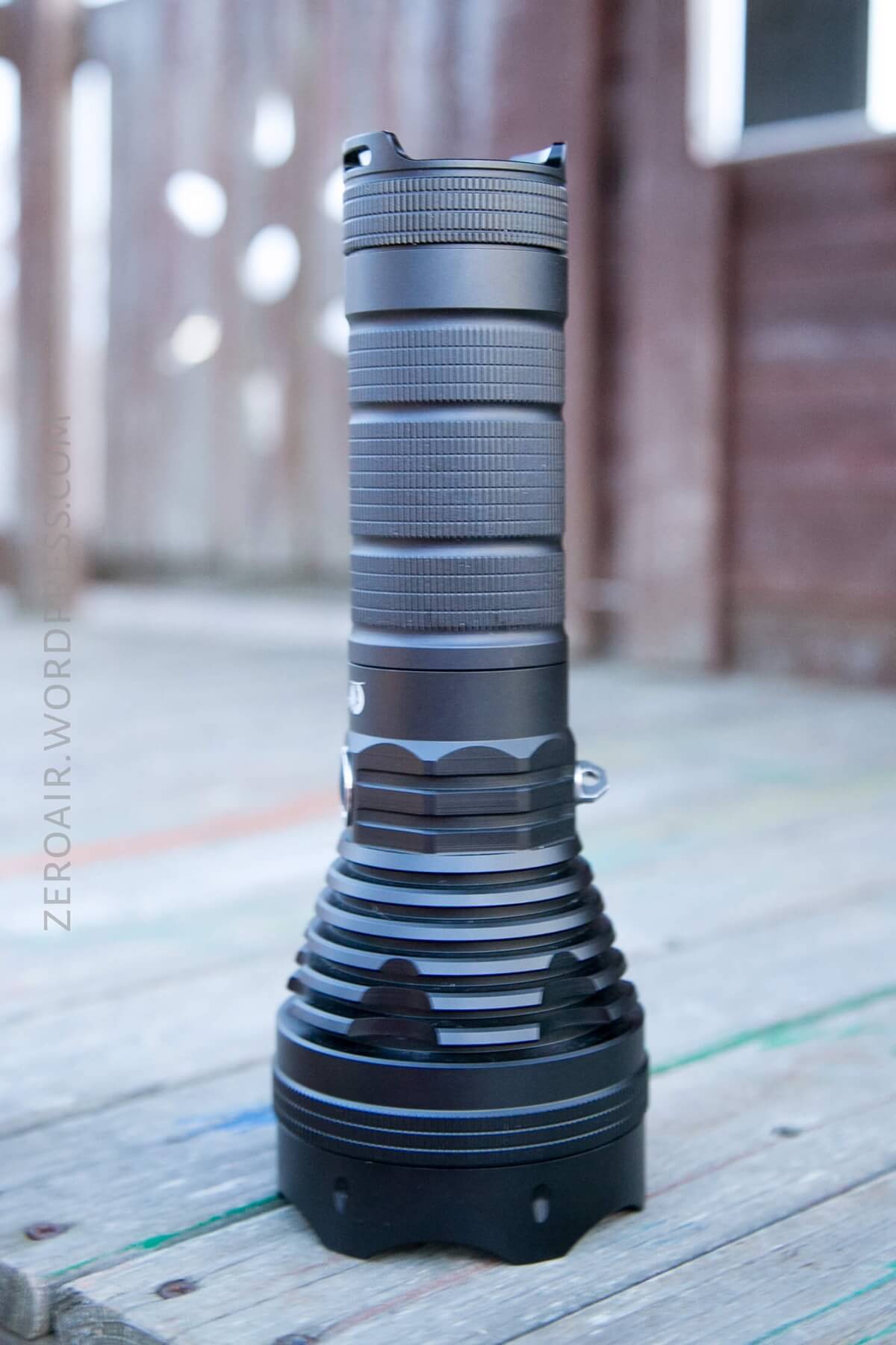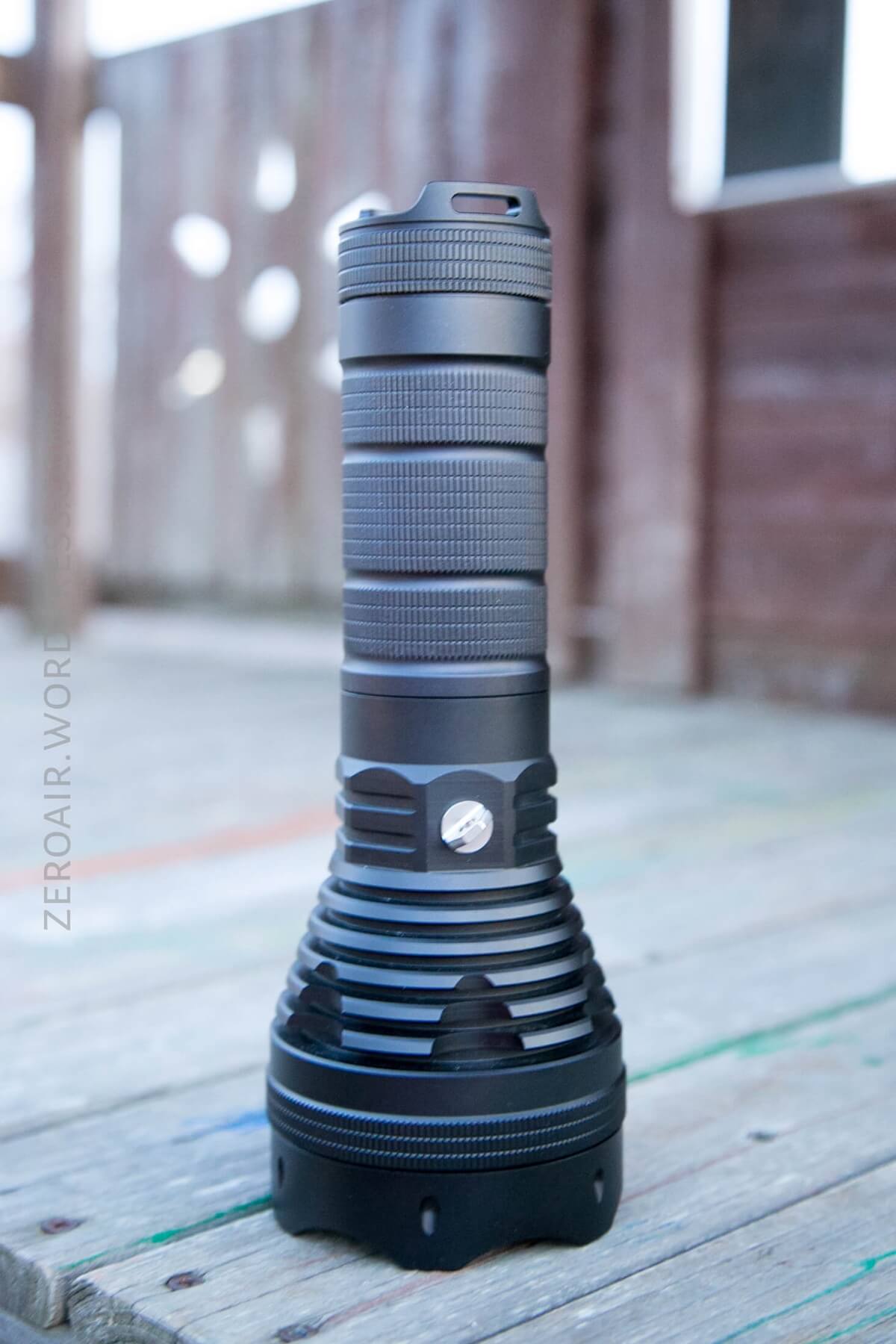 Officially this light is 248mm long, 89.9mm head diameter, and 52mm in the body diameter. Without cells, it weighs 831g.