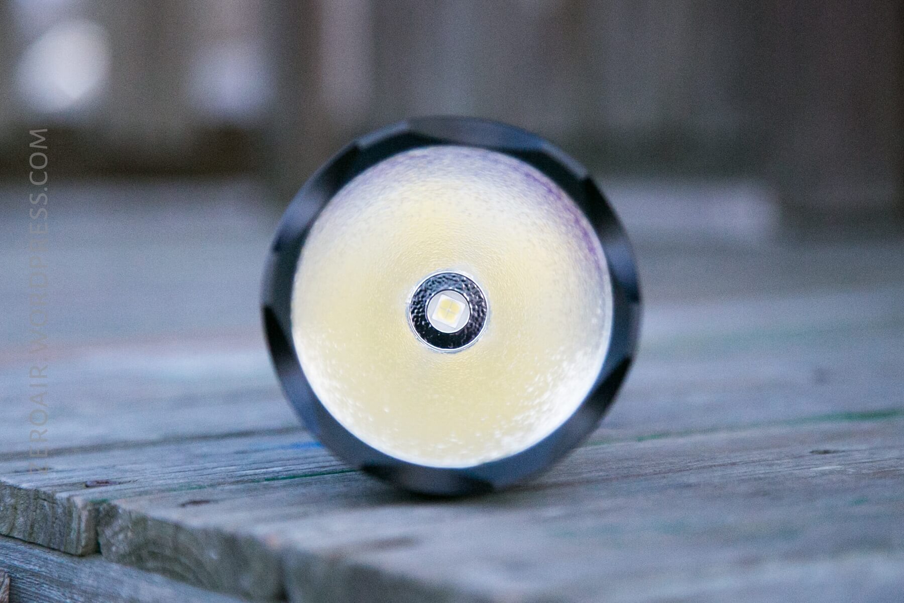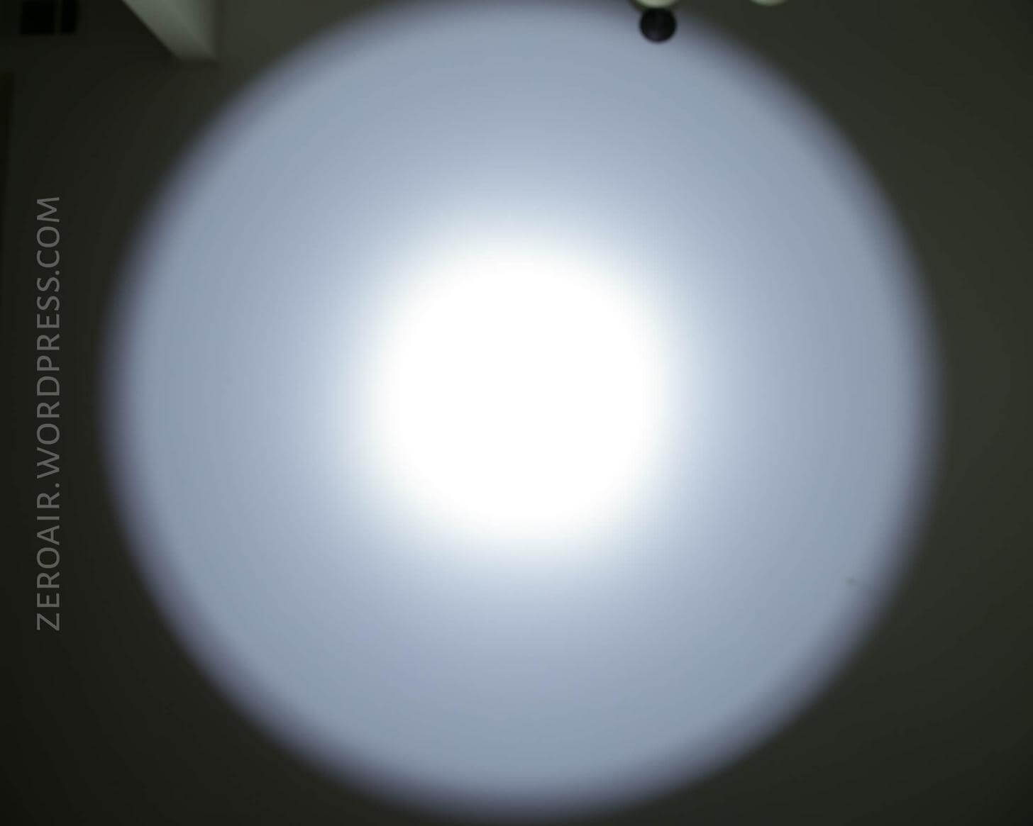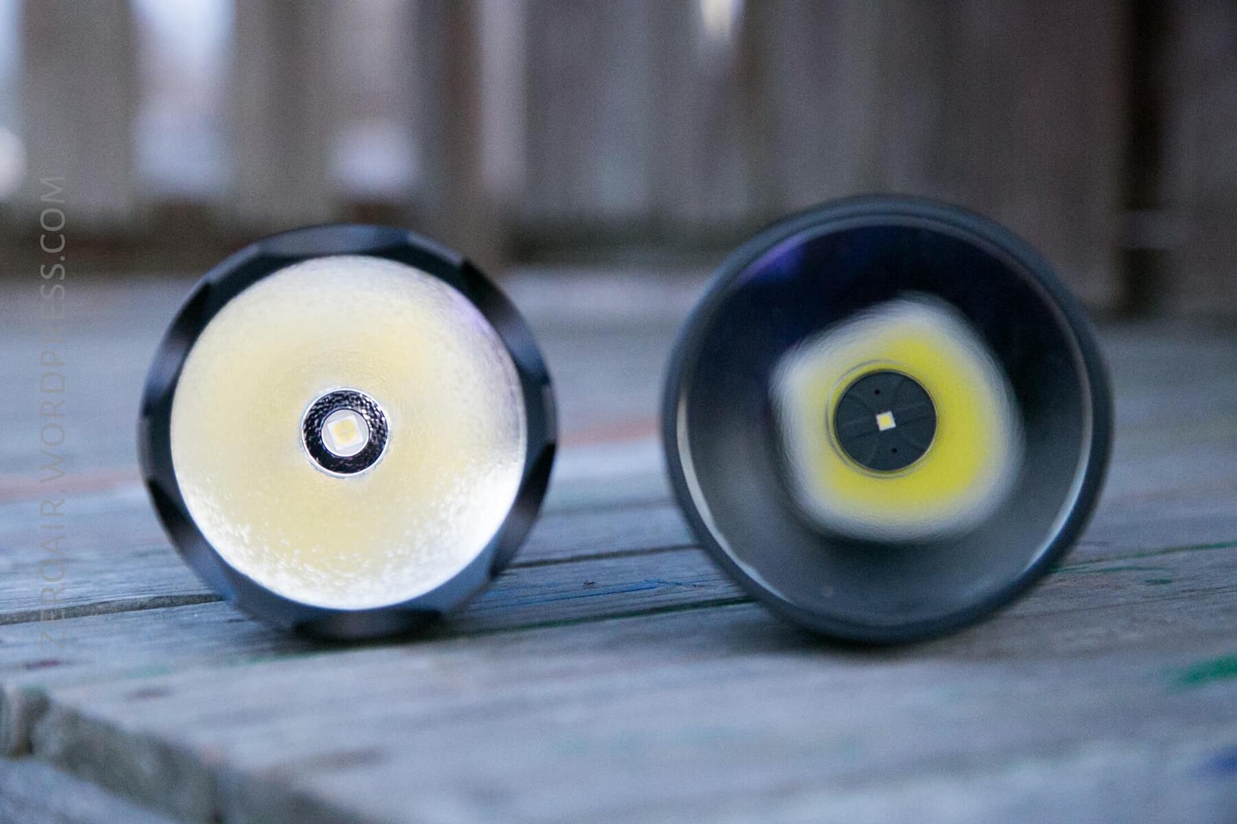 The emitter of choice in this big ol’ light is a Cree XHP70. It suits the light well, and while not really intended to be a thrower, it does throw quite well (around 700m). The reflector is orange peel, and it smooths out the beam nicely. There’s a very concentrated hotspot, but this isn’t a pencil beam thrower.