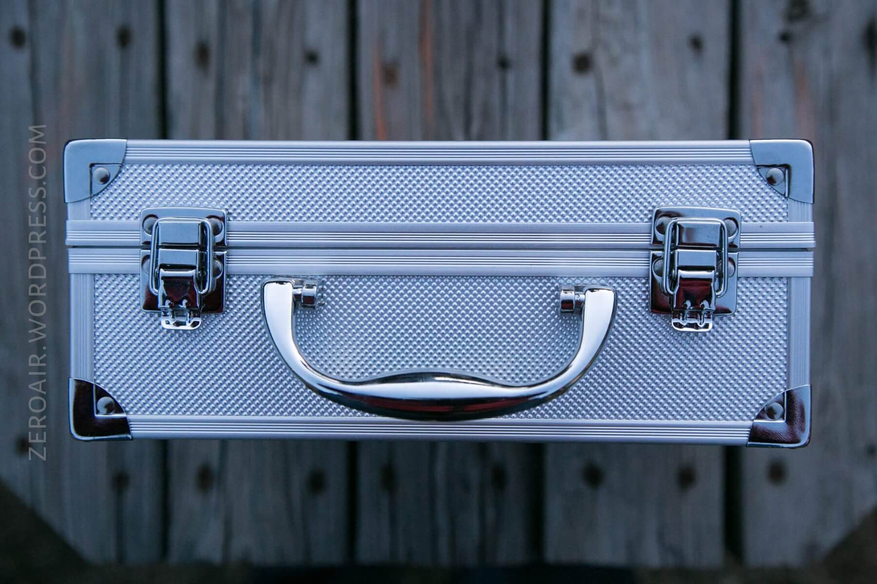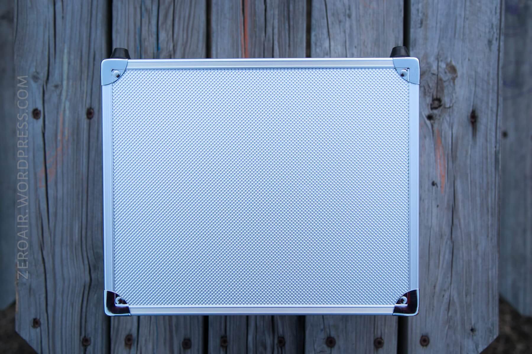 The light actually ships in a box, and then in the case, as seen below. The briefcase is not wrapped with any other protective material. The case does not have a lock.