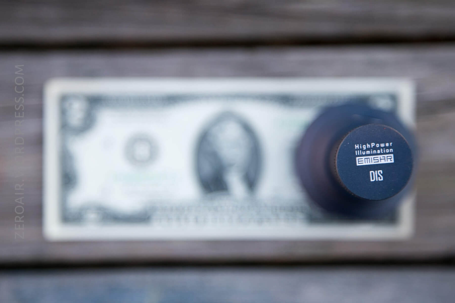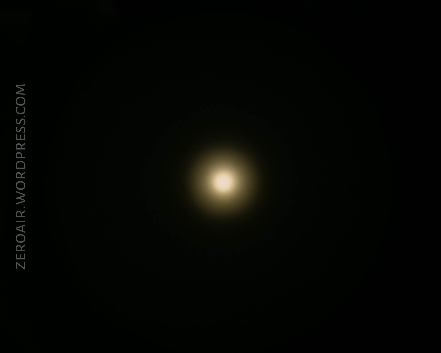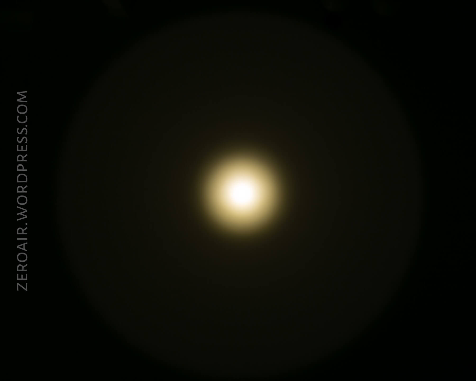 The beam is very much throw. The emitter sits under a very smooth, big reflector. The beam is – unlike the D1 – very concentrated on the focus point. (Just to contrast, the D1 has a defined hotspot, but it’s perfectly even all the way across the hotspot.)