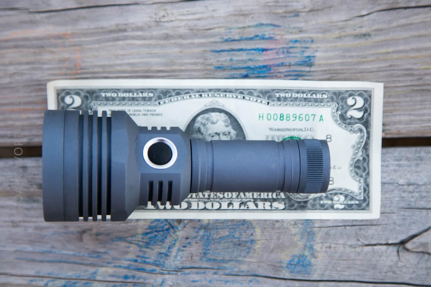 Officially: Length: 127mm, Head Diameter: 50mm, Tube Diameter: 24mm, Tailcap Diameter: 25.6mm. The head is quite large, on such a small body, but that’s not unheard of. (I think of the Nitecore P30, which has very similar dimensions. And I really liked that light, too.)