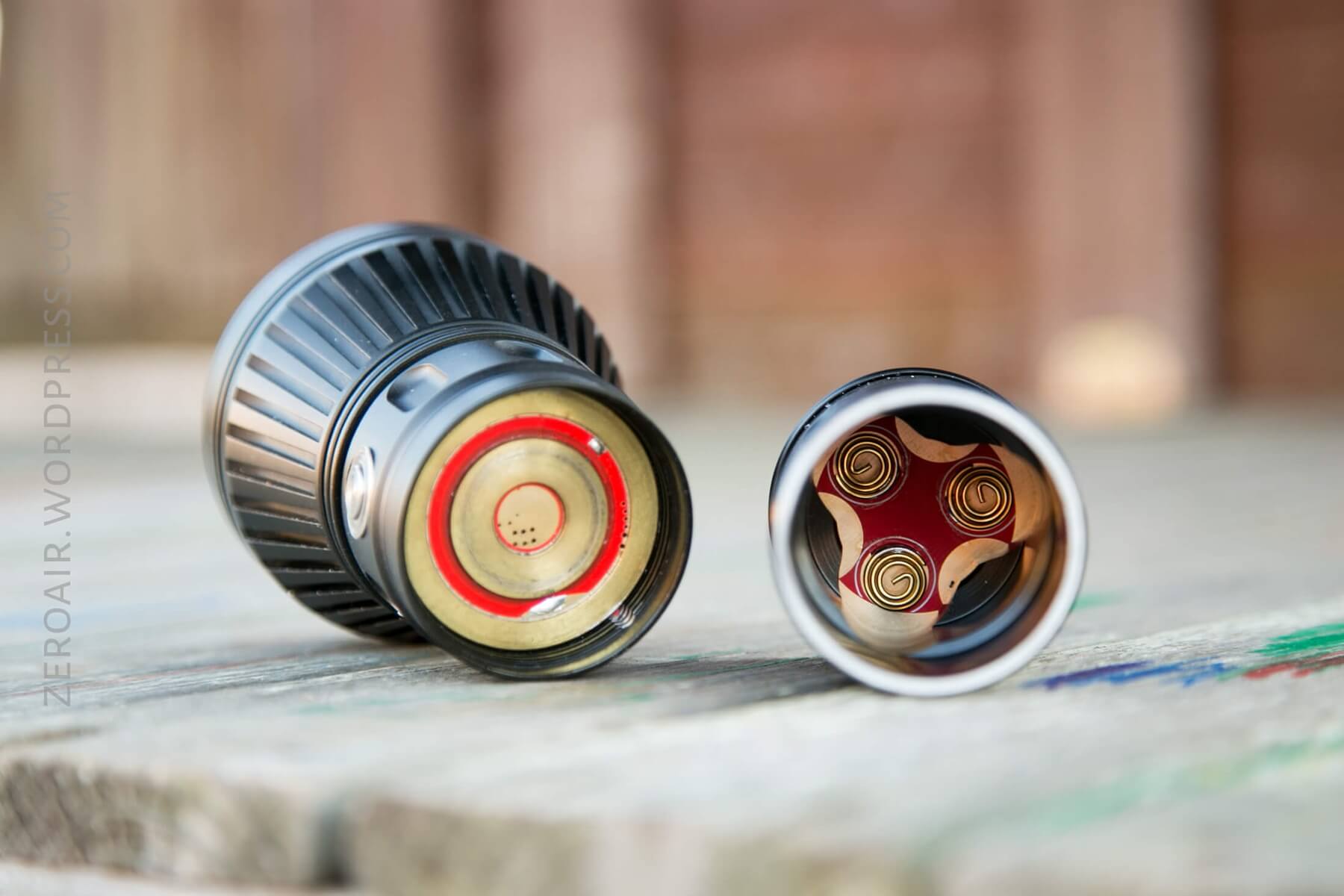 Below, note the brass contact points on the head. These are big and thick and make great contact. The tail end has thick, firm springs. I did not remove the driver from the head – I’m not sure if it’s press-fit or screwed in. I don’t see any spanner connect points, so I have to guess it’s press-fit. And with the e-switch and charging, that makes fairly good sense.