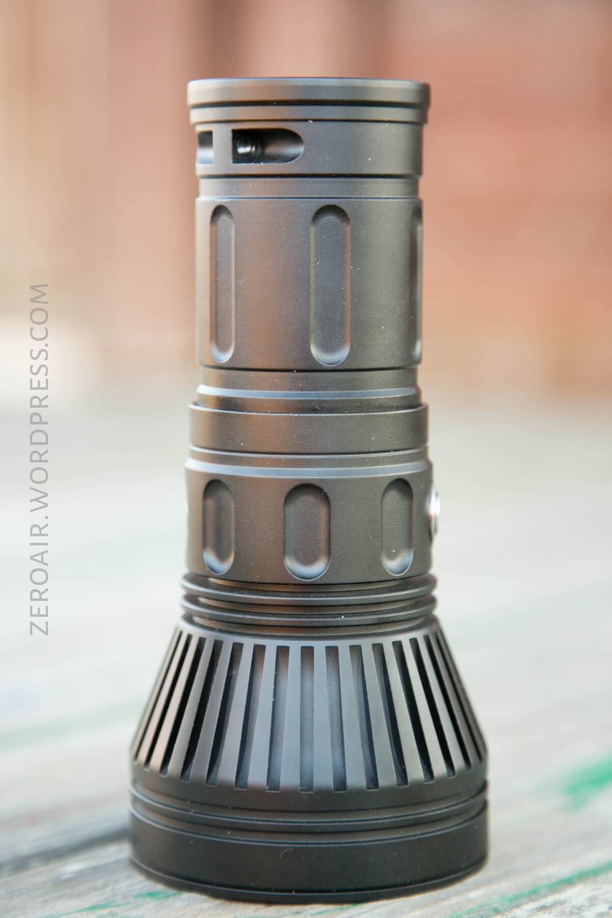 Officially 156mm long and weighing 369g. I measure the head at 72.52mm, and the tail at 47.78mm. The head of this light is quite large, as would be expected. It’s a great light for a bag.