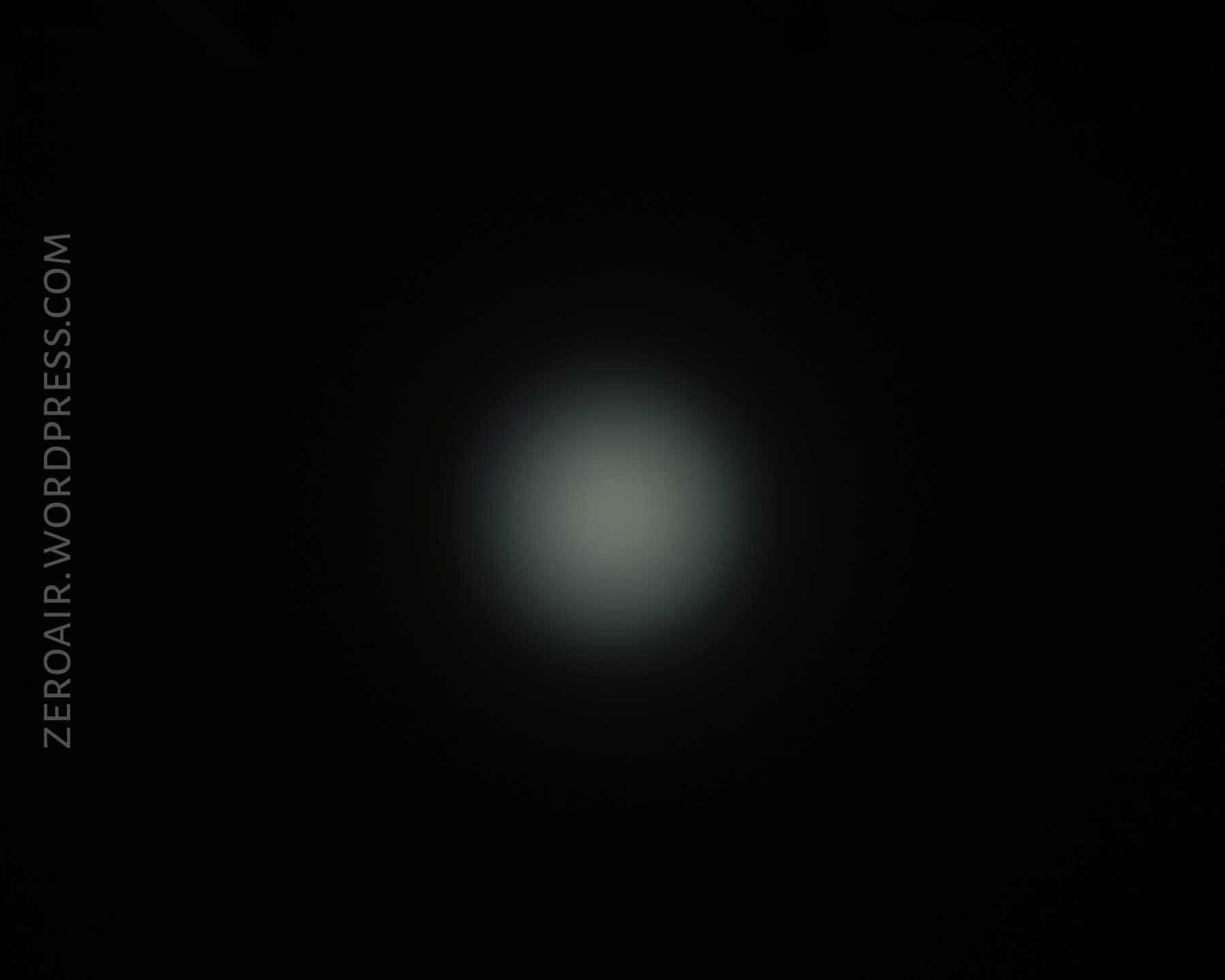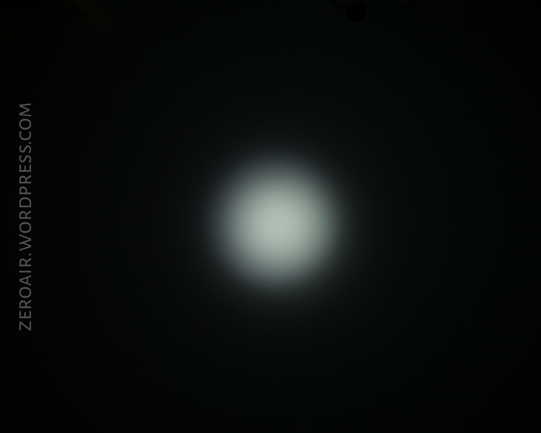 The emitter is behind a TIR, and the beam profile is quite a spot with little spill. There’s a fair bit of green in the beam, too. At a distance, it’s not that bad.