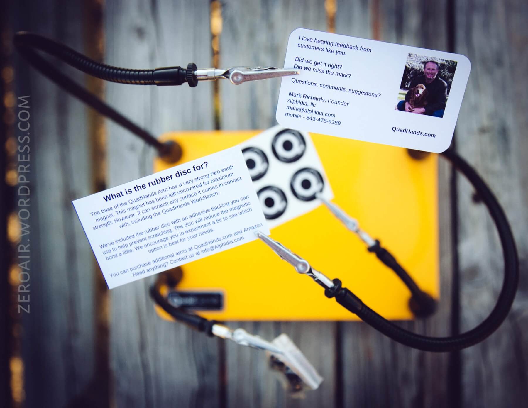Having used this product for a while, I’ve noticed a few things I’d love to see… added. Not changed, just different options. I’ve talked to QuadHands, and they’re very responsive to ideas!!