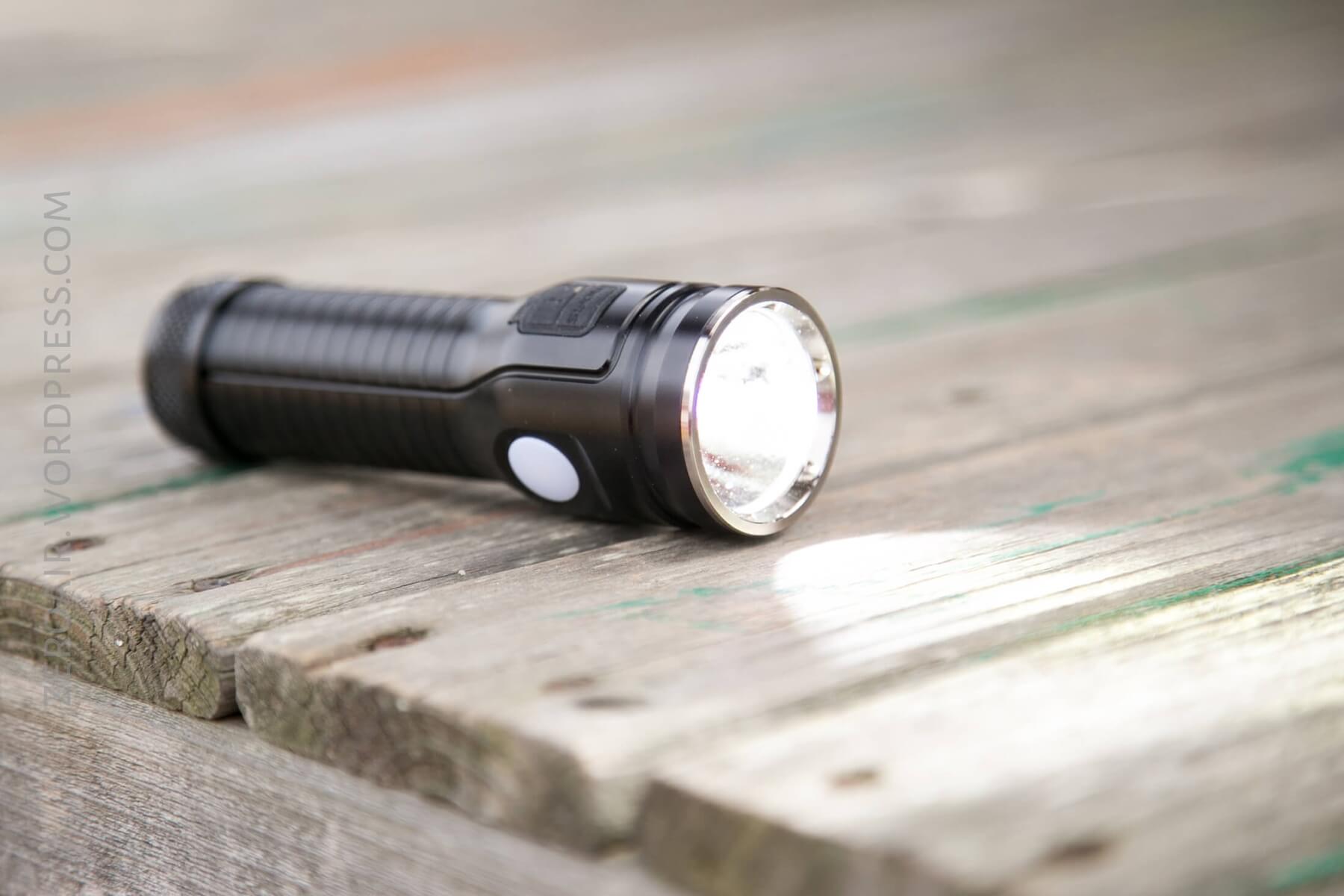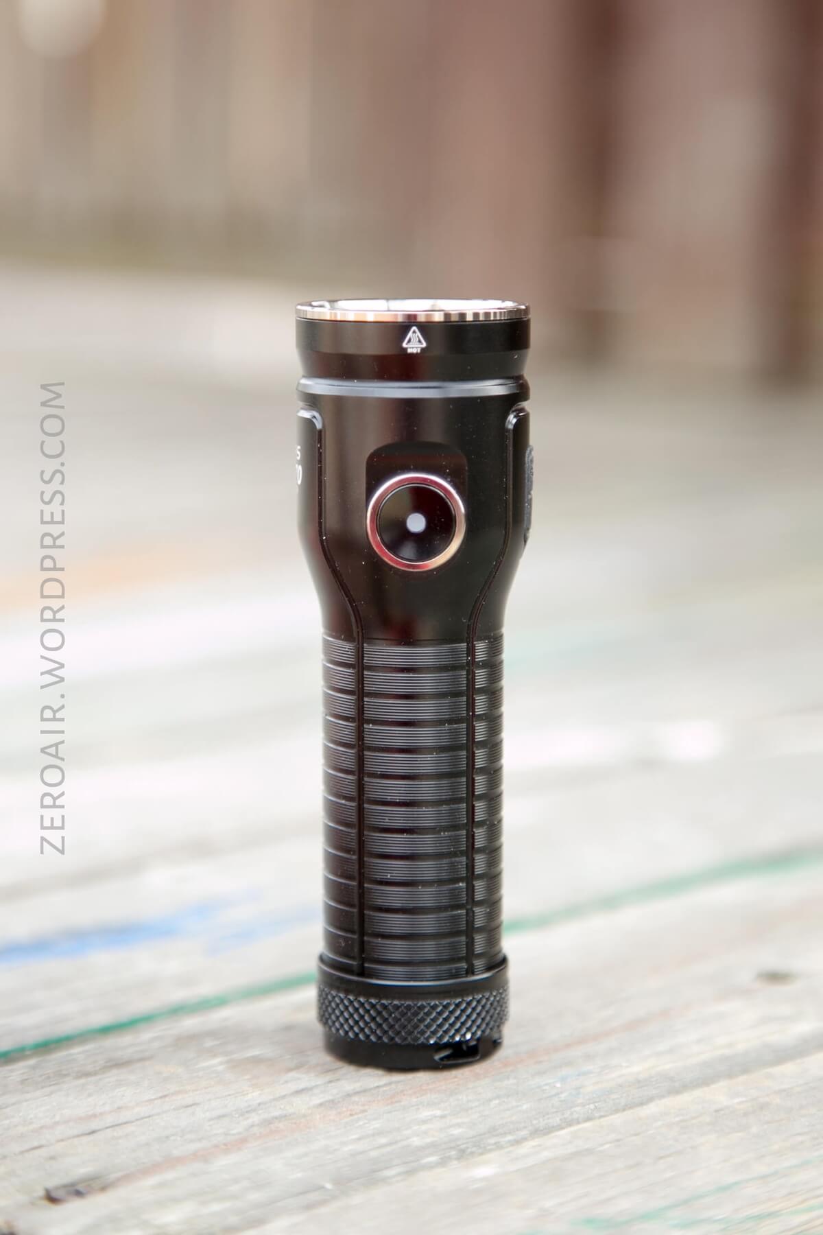 Really, the light feels great in the hand. It’s not large for a 26650 light, though not very pocketable. Much less is it big for a light with onboard charging and a secondary emitter, and one that can act as a powerbank.
