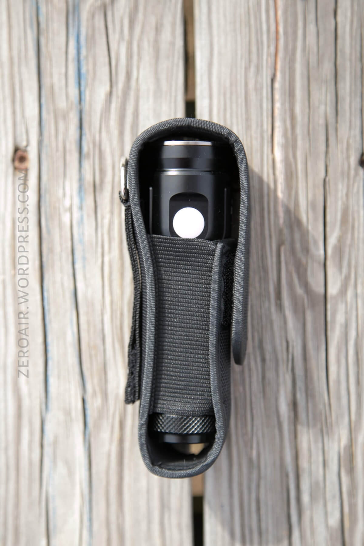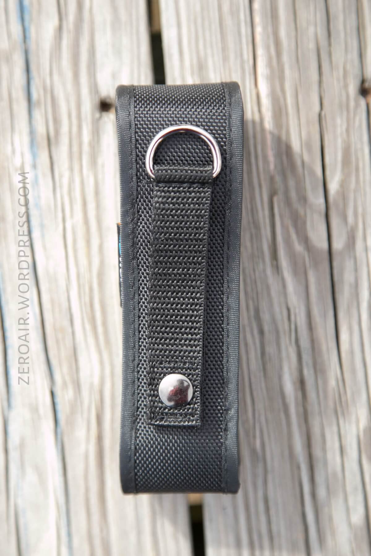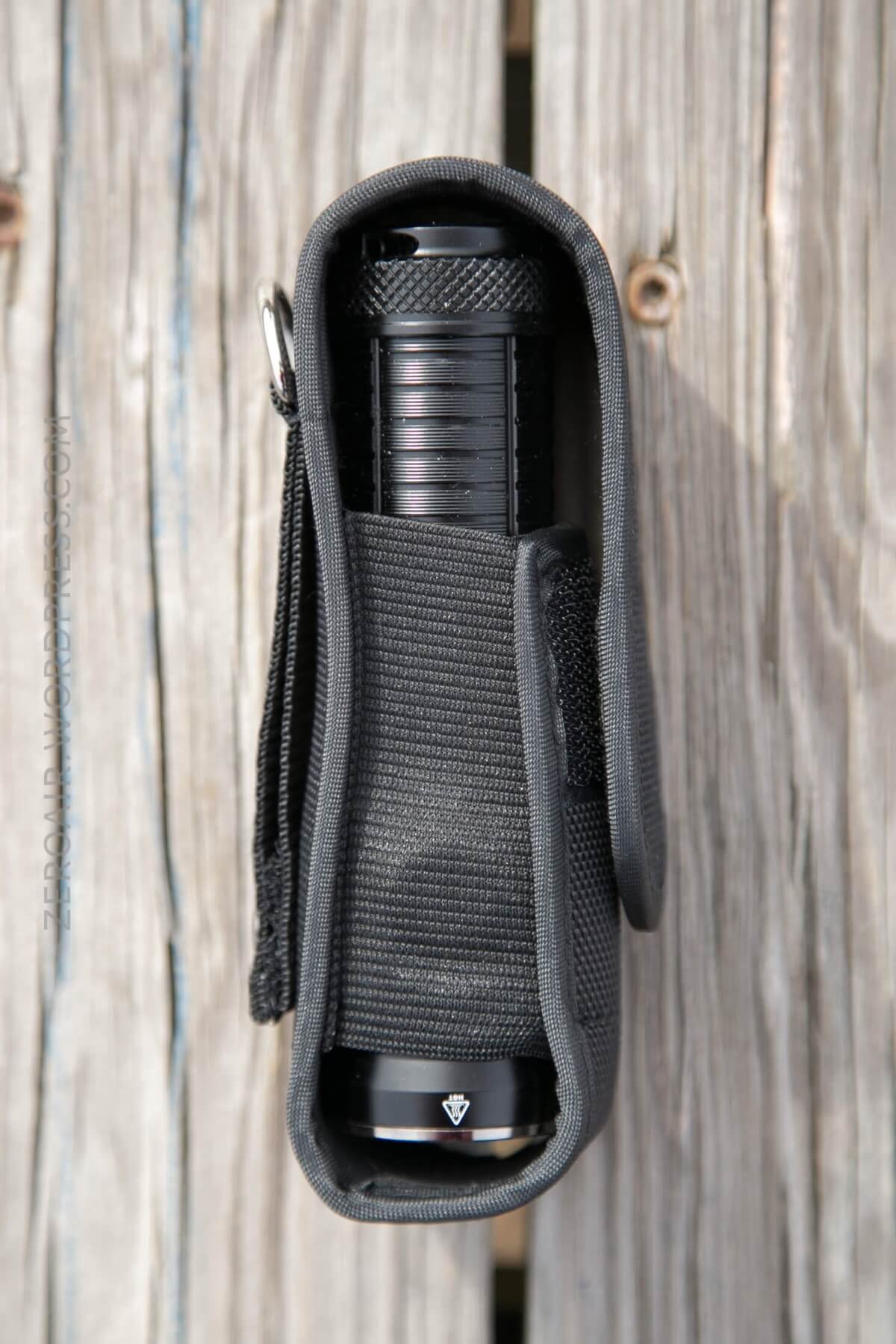 The nylon pouch that ships with the MR70 is quite nice. There’s an actual metal D-ring on there and a metal snap. The light will fit in either orientation, but is most comfortable bezel-up.