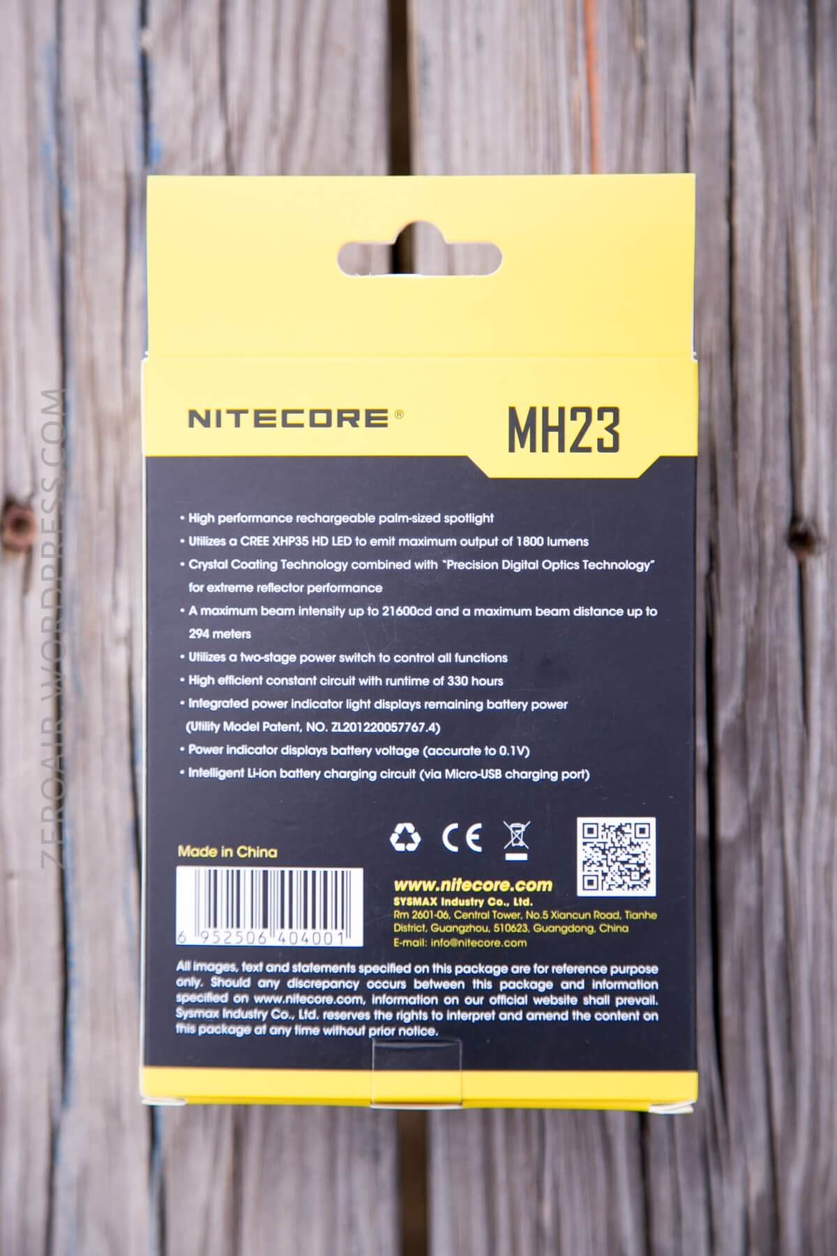 Absolutely standard Nitecore package here. Photo on the front, description/specs on the back. It’s a good package.