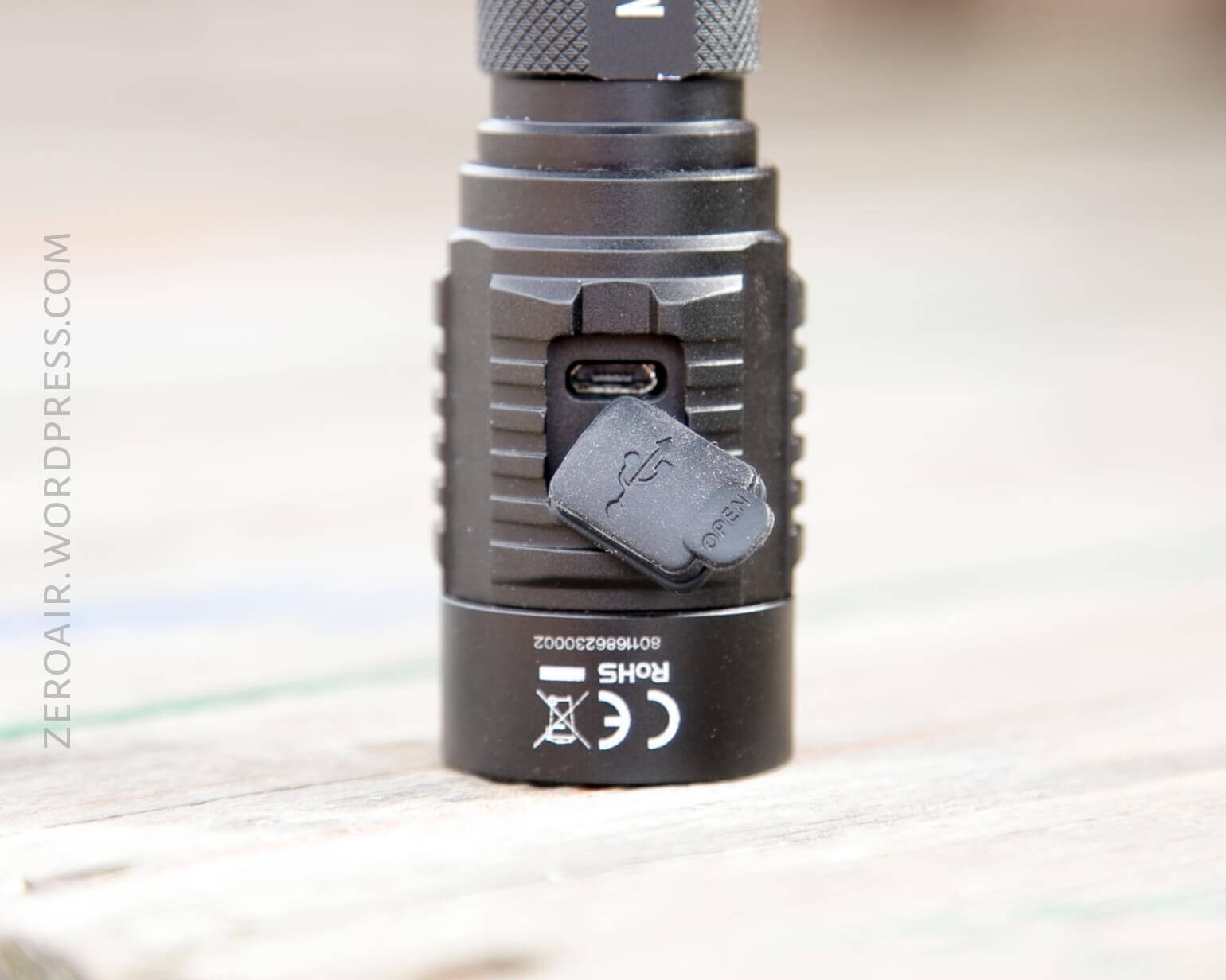 The MH23 also has onboard charging, via a micro-USB port on the head. This is covered with a rubber boot, which presses in. As far as I can tell in the product description doesn’t say at what speed the light charges, but my experience is charging settles at about half an amp. The manual does say charging should take 6 hours. My charging took over 8 hours. This is slower than I would have expected, but I don’t mind charging my cells slowly.