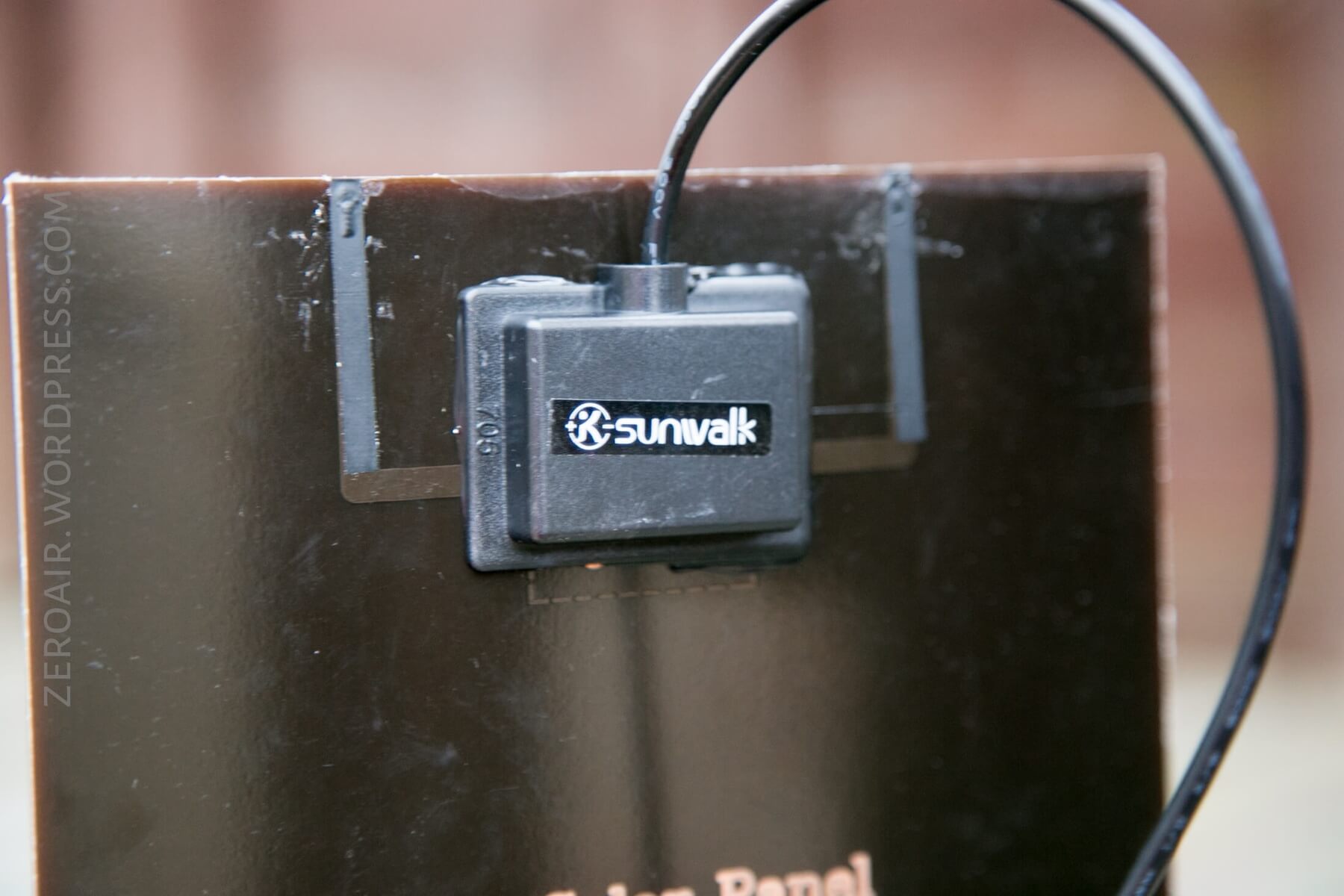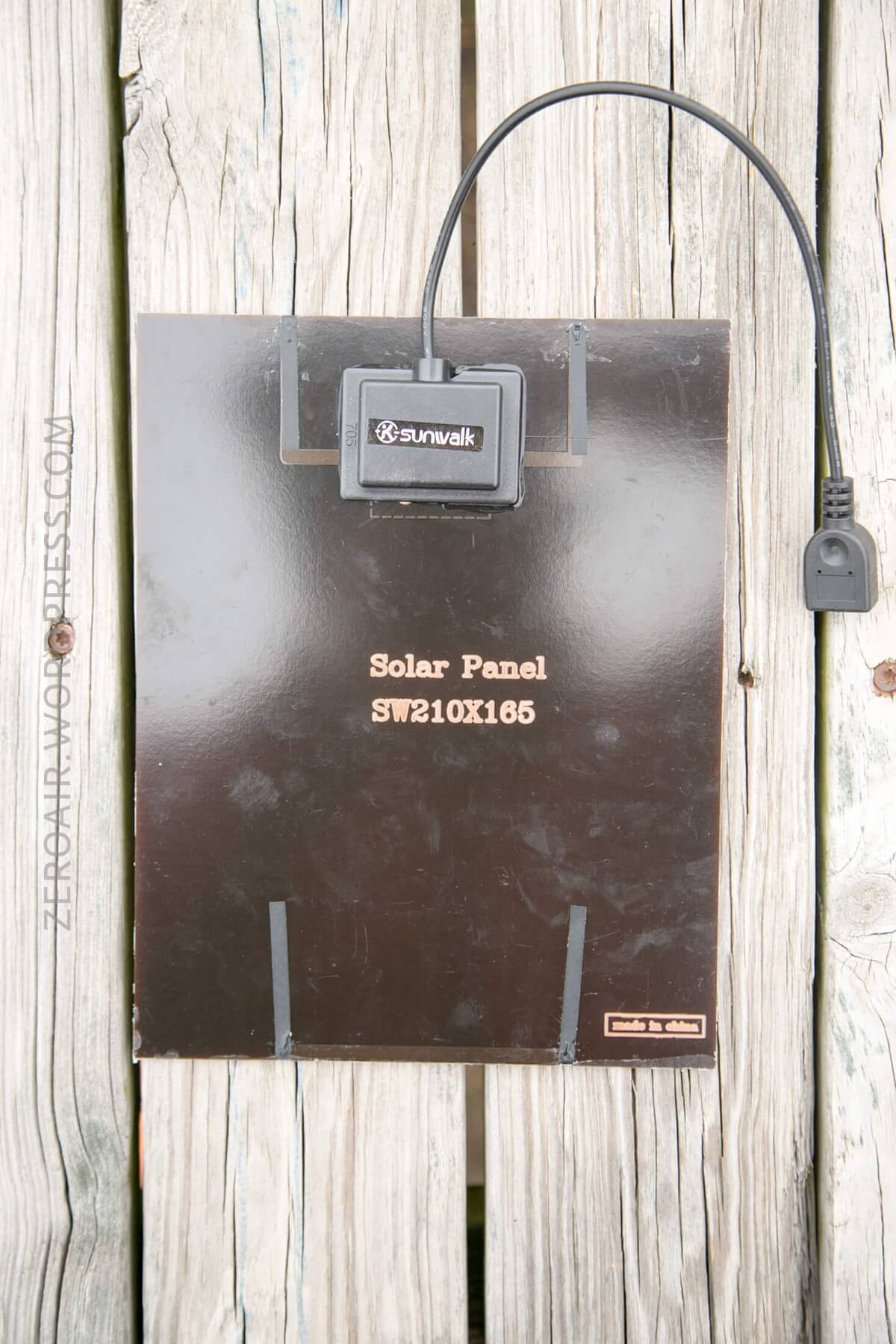 The back of the panel has a SunWalk sticker on what’s probably a generic solar panel.