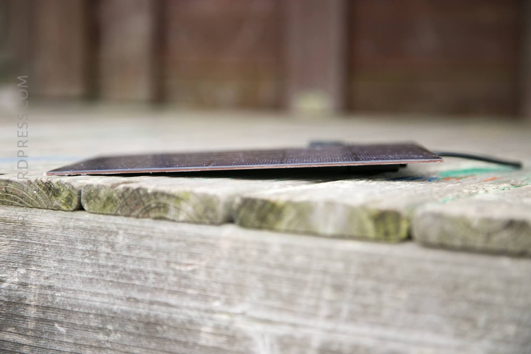 I haven’t evaluated a solar panel before, so I can’t say this is better than that. But I can say that this panel has held up to my use, and seems well-built. The solar wafer layers are atop what looks to be a PCB, and the edges aren’t sealed in any way. I think they’d be water-resistant, but my impression is that the edges might eventually soak water.