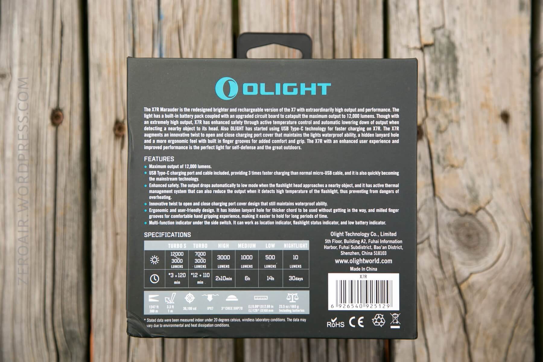 As is common with these larger Olights, the box is a flip-top, cardboard, highly printed box. I really like this style, because it’s so easy to get into, and it’s not like a game of Frac to get things back into the box.