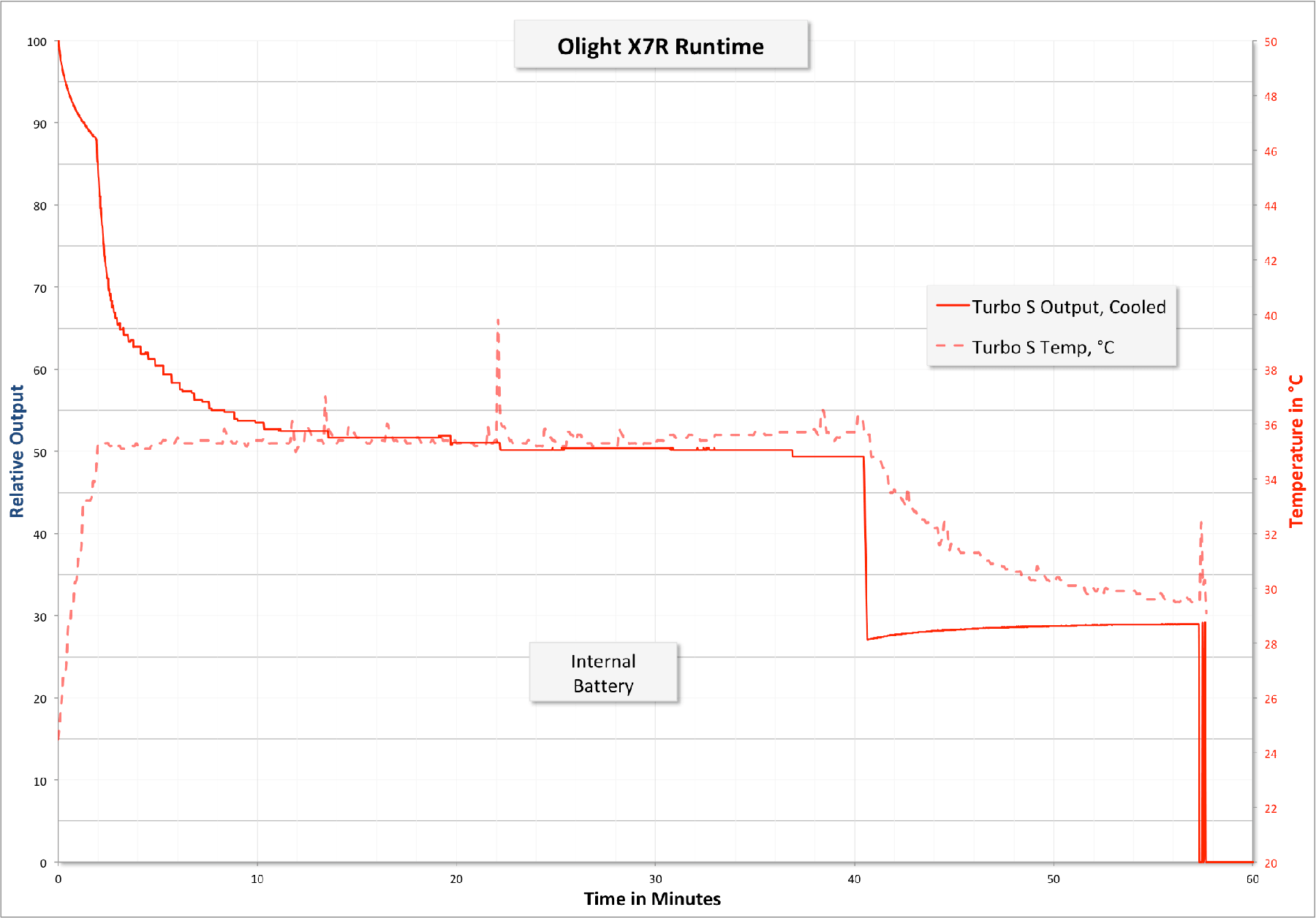One thing to note from the runtime is that the output graph is almost exactly like the X7 runtime. There’s a steady decline over a few minutes to aroun d90% output, and then a drop to 50%, then another drop to ~30%. This is exactly how Turbo S performed on the X7.