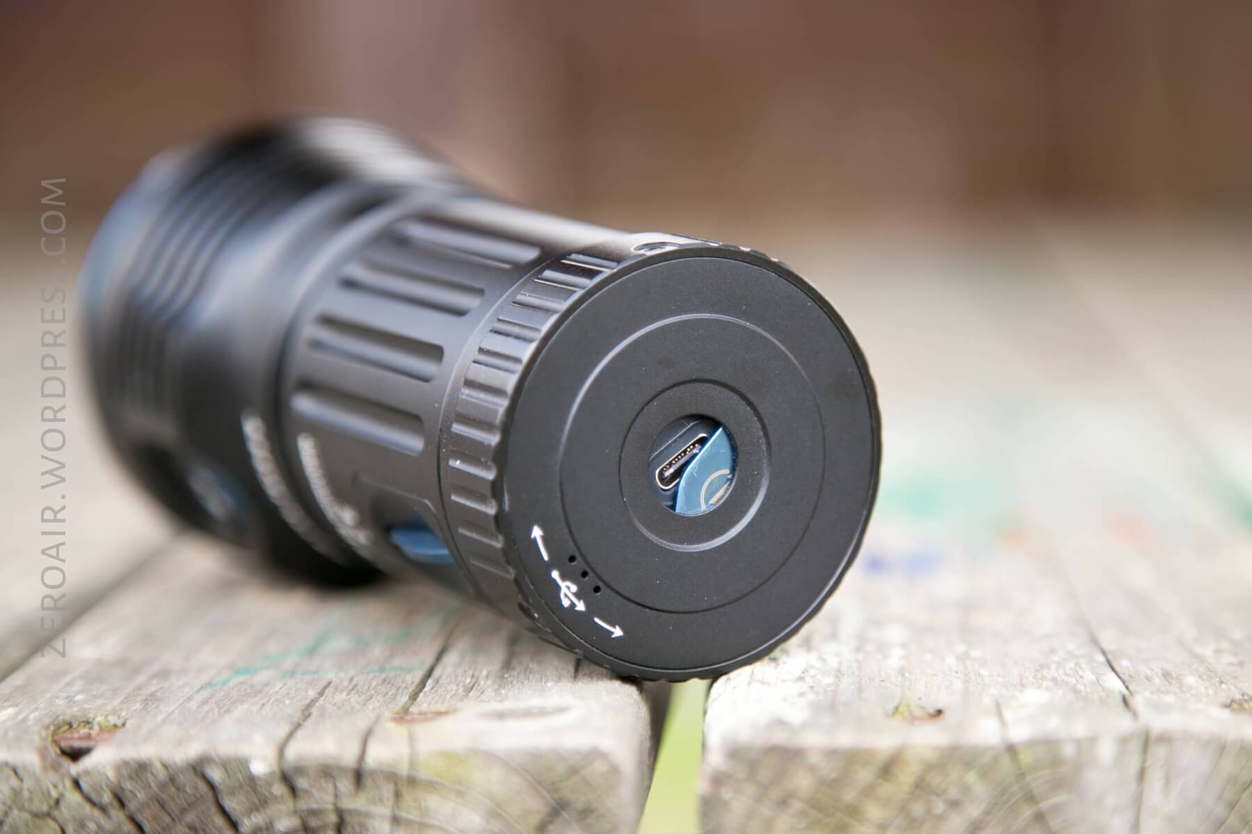 The Olight X7R is powered by an internal battery. It’s very likely the same setup as the original, by which I mean it’s likely 4 18650 cells inside. But in this case, they’re integrated and aren’t to be removed. It’s likely possible to remove these with enough determination: there are three set screws around the tailcap. Very small hex screws…. But I didn’t attempt this.