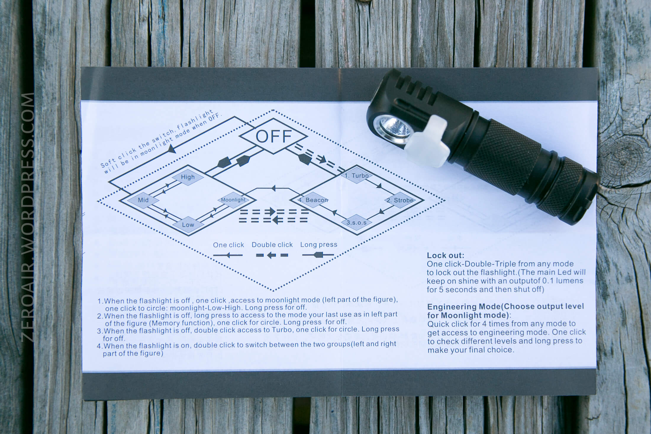 The manual is very useful, and quite required for the user interface diagram. The user interface is Manker’s typical user interface (not sure offhand if there are variations on this, or if this is standard on all their lights). More on the user interface later. The rest of the manual covers specs and output/runtime as you’d expect and it should. It’s a fine manual.