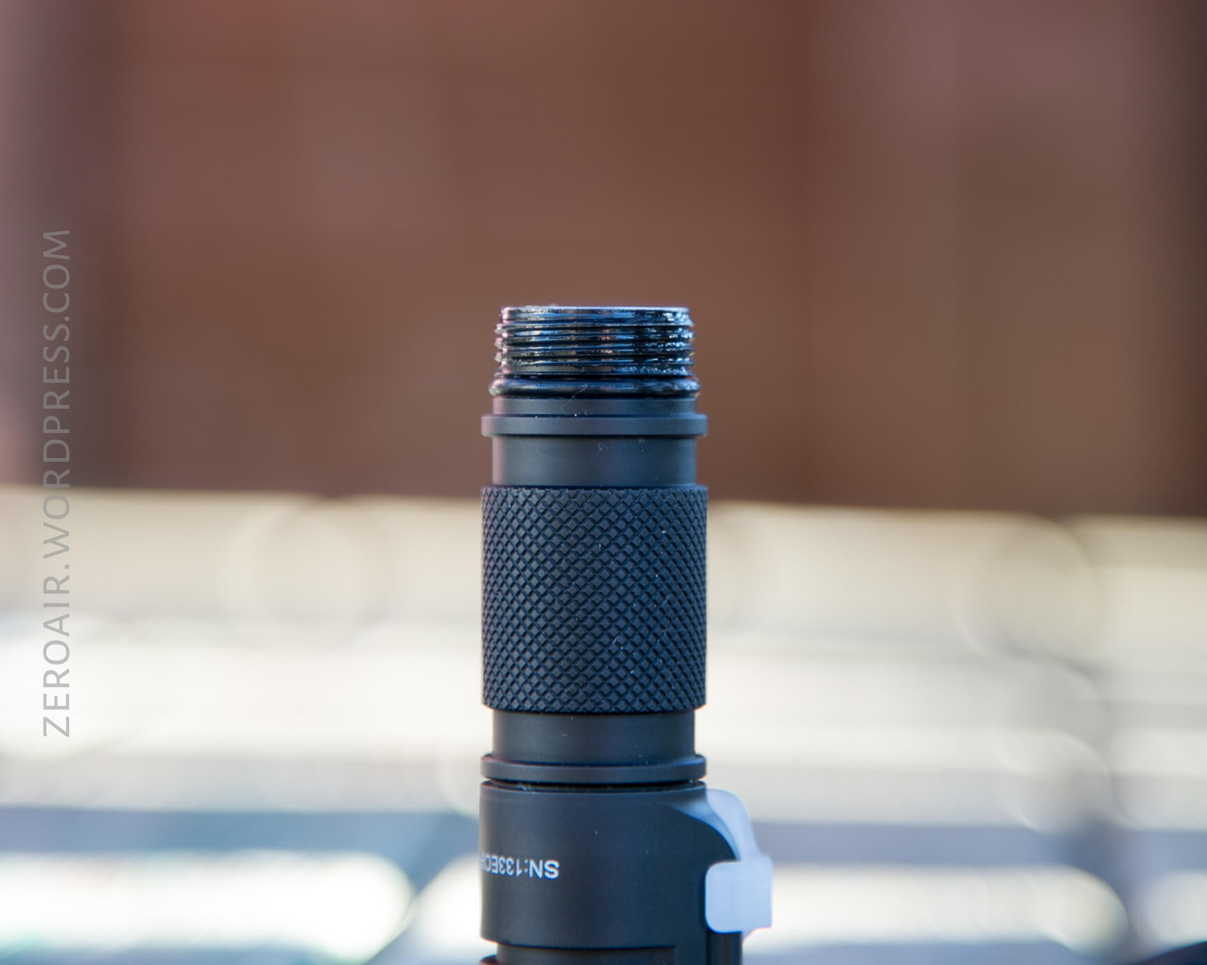 The threads on the tailcap are quite nice, being square-cut and reasonably lubed. They’re anodized, and the anodizing is slightly matte finish, and a bit …. chalkboardish (but nowhere near Armytek level), so that can be felt in the threads.