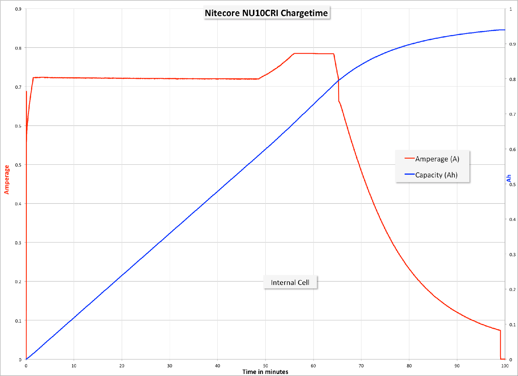 Though no amp-hour claim is made, the cell looks to be around 950mAh.