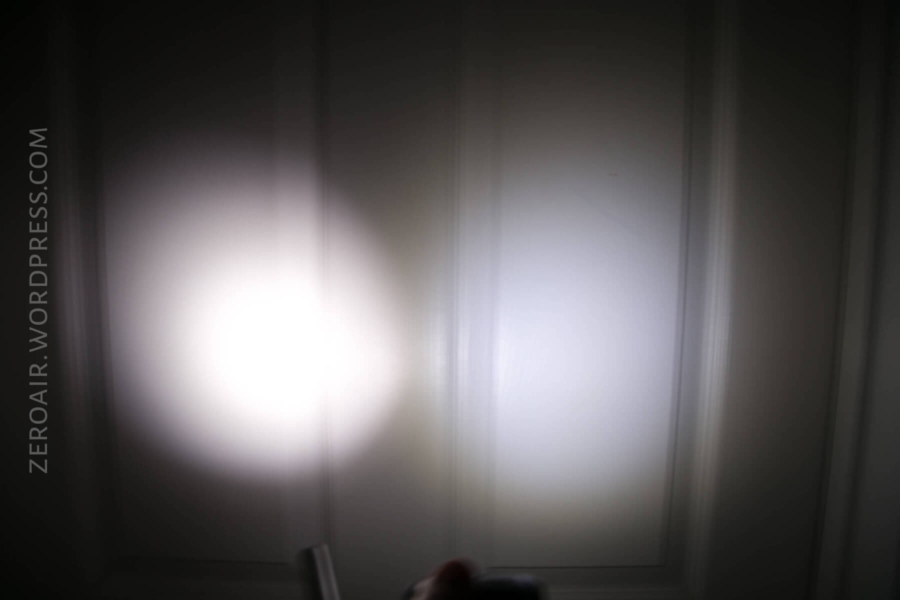 The red beam has a surprising spot, but it’s very fringey – the center is not nearly as bright as the corona, and there’s almost no spill. Also, the red is quite bright for up-close work, but dims quickly at any distance.