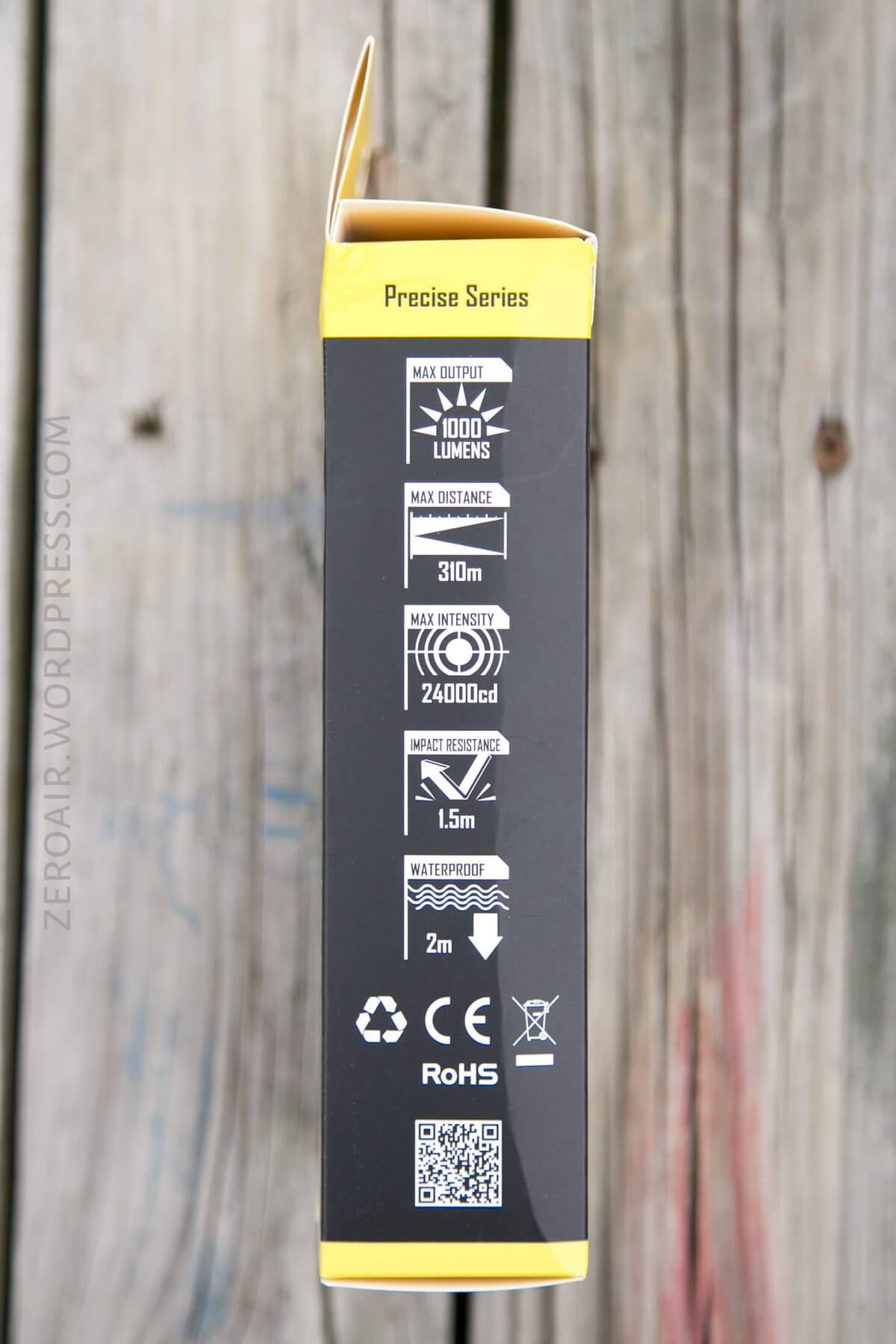 Nitecore’s standard black and yellow package with photos and specs, and even a serial number. Good package, nothing special. Does its job. The light is held in a plastic tray.