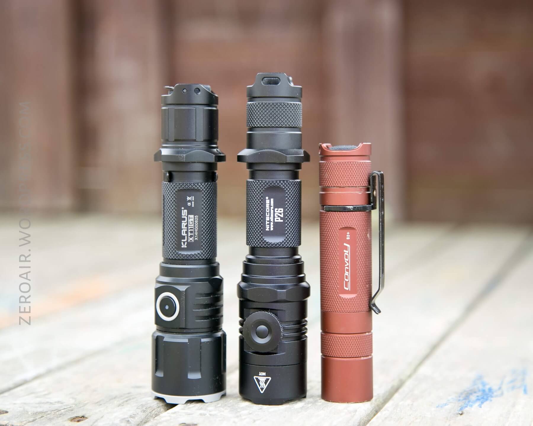 Here’s the P26 beside the Klarus XT11GT and a Convoy S2+.