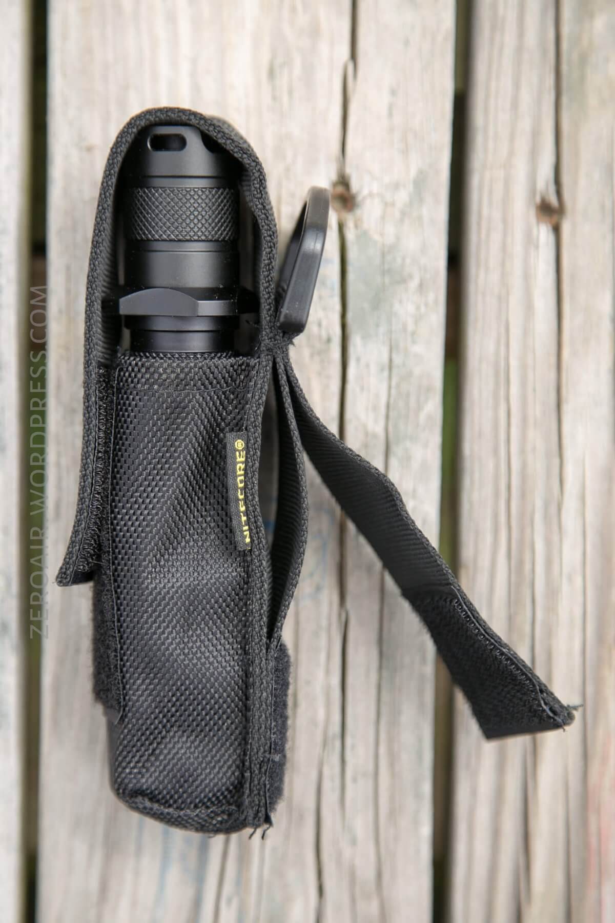 There are a few ways to handle the P26. First is the nylon pouch. The light fits either head up or down. The pouch has a belt loop, a velcro belt loop, and a plastic D-ring.