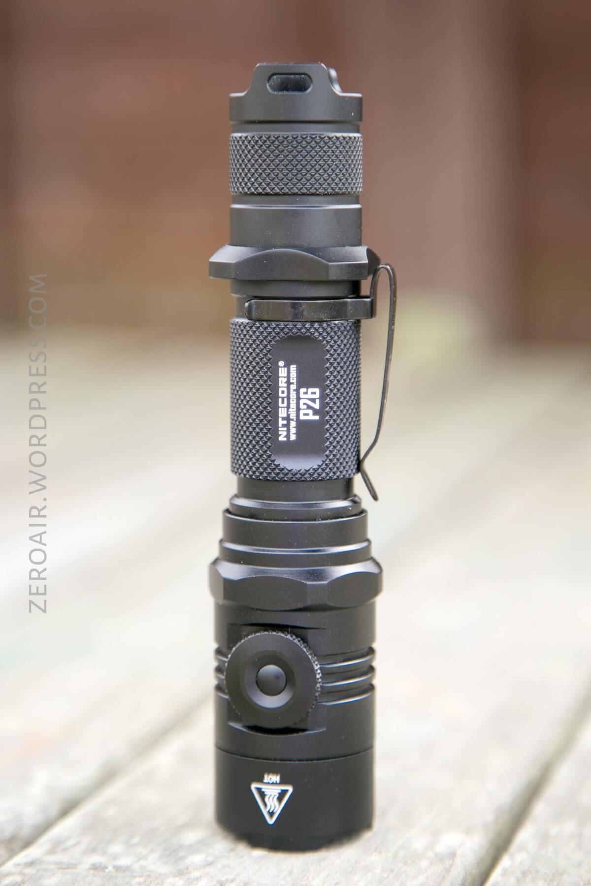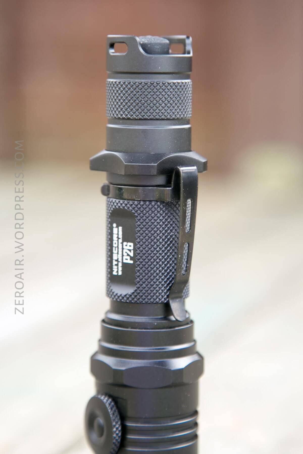 The P26 has a nice feel. The light is a bit long. There’s a tactical grip ring on the tail, and it’s fixed (doesn’t rotate freely as tac rings often do.)