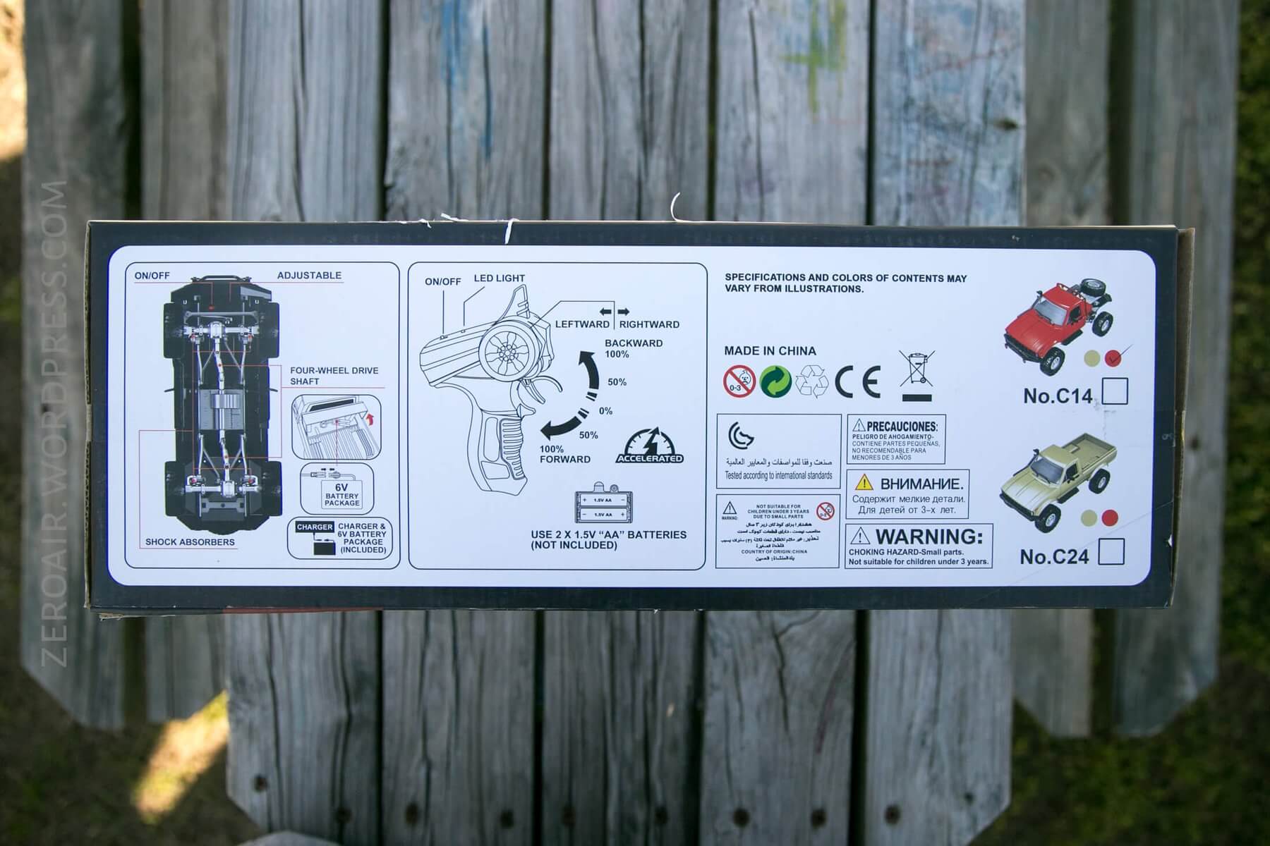 This is a 1:16 scale remote control car. The official dimensions are 31 x 14.1 x 14 cm. Not a large vehicle, and I’d call it a great size for kids, or for learners.